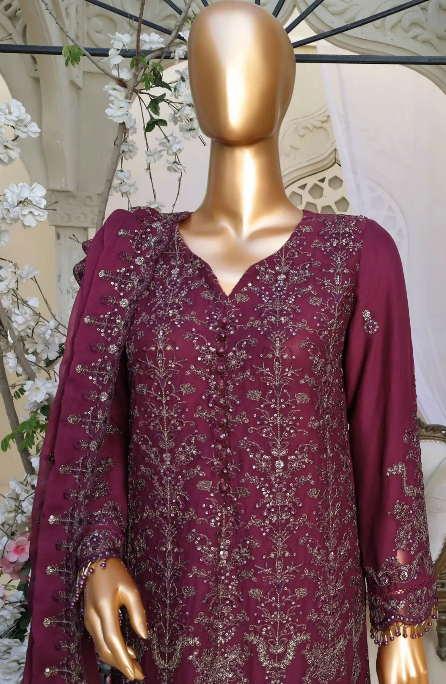 Sadabahar Premium Embroidered Cross Texture Stitched 3 Piece Suit - Design-01 - SBD25FEST - Maroon - Winter Collection