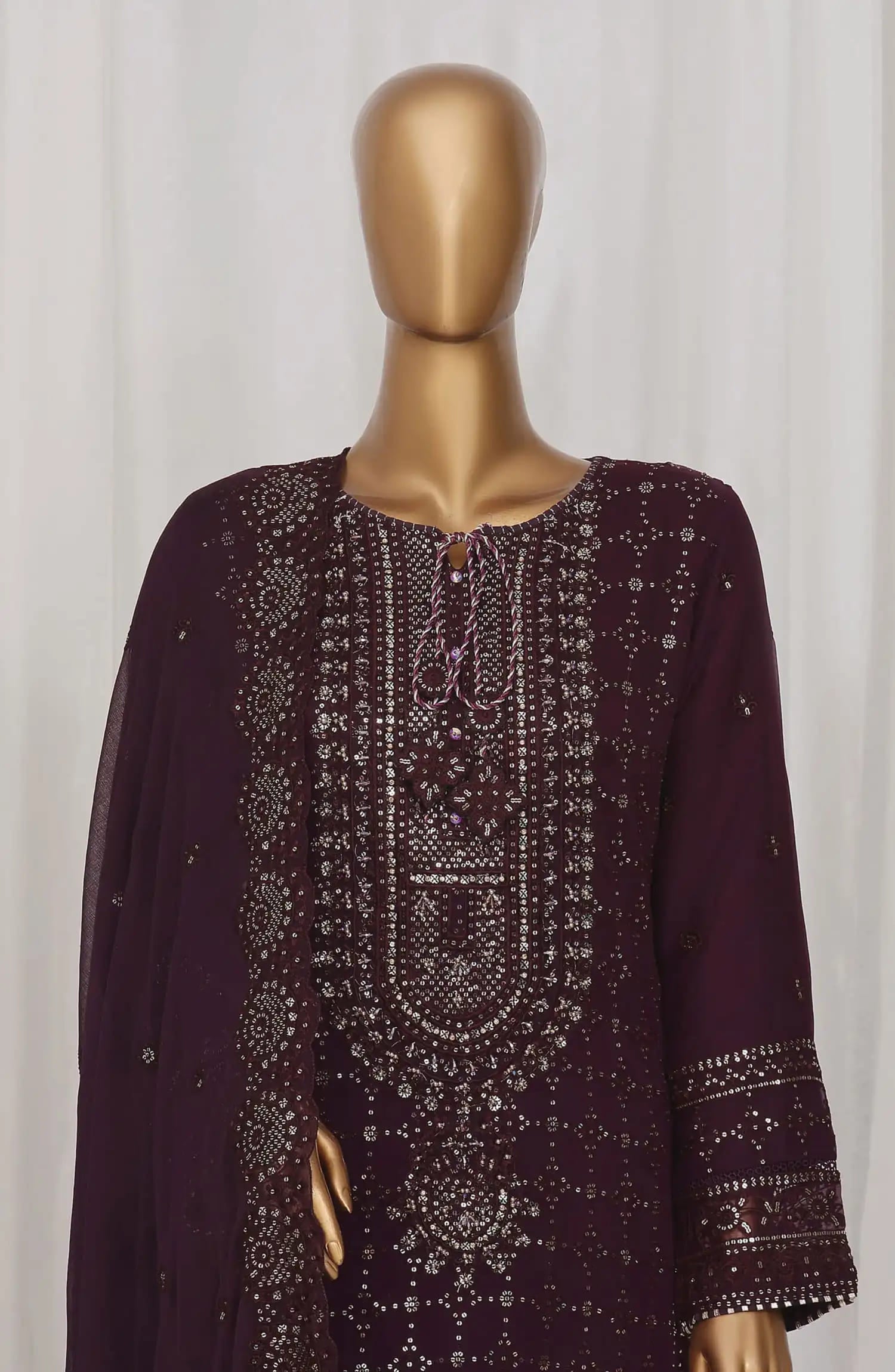 The standard style comes as a long-sleeved kameez with dupatta and trouser/shawlar.