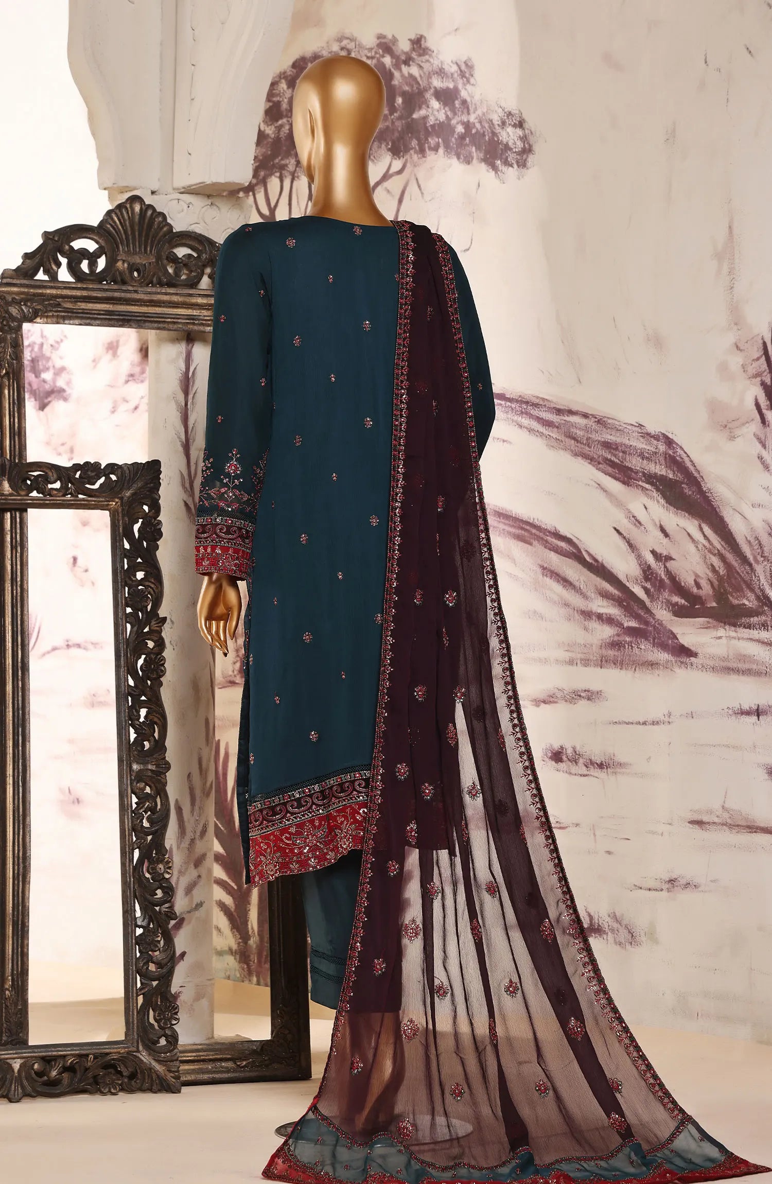 SADABAHAR Afsanay Luxury Chiffon Collection Vol 3 has been styled in the image for photography and illustrative purposes.