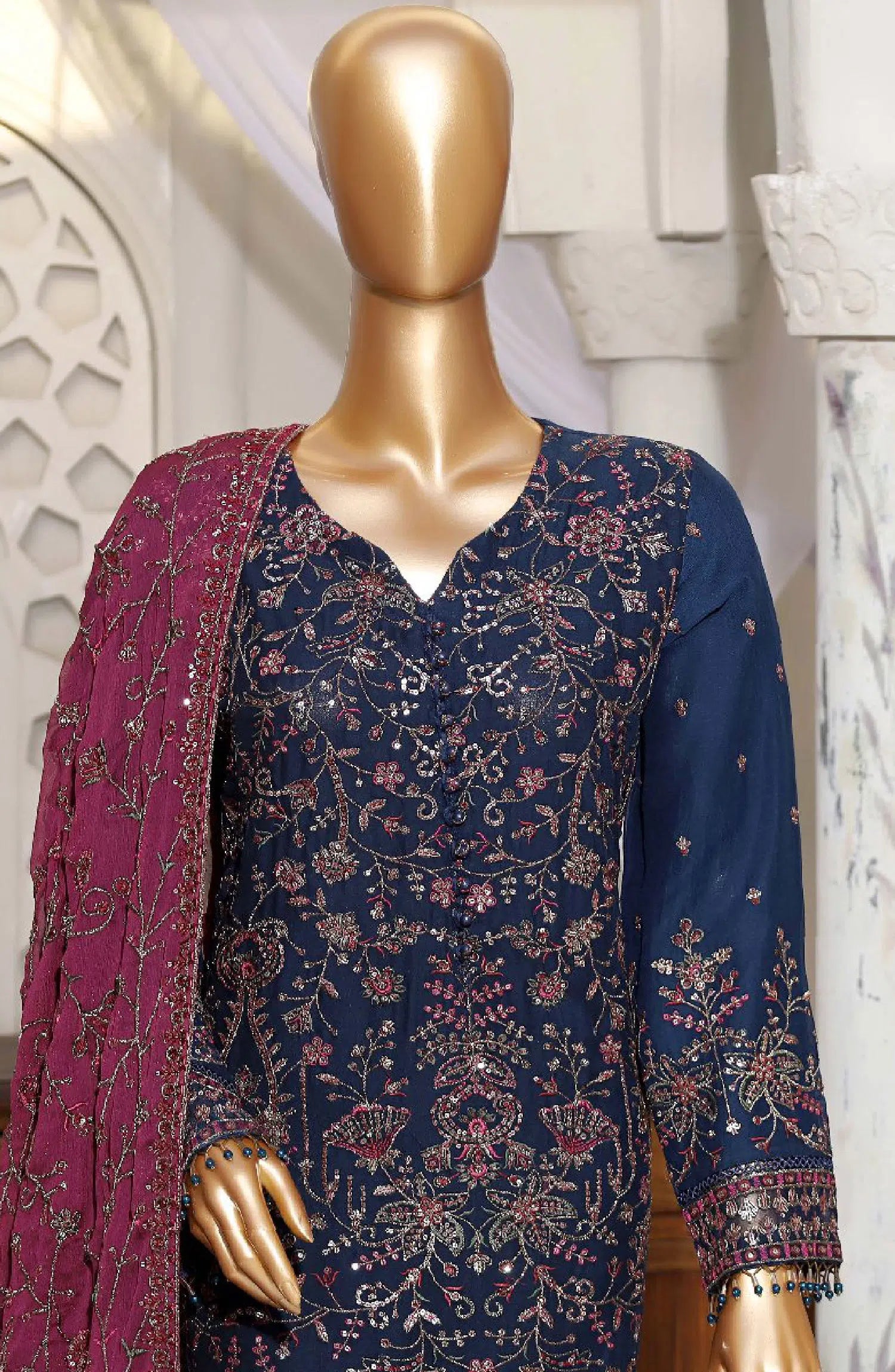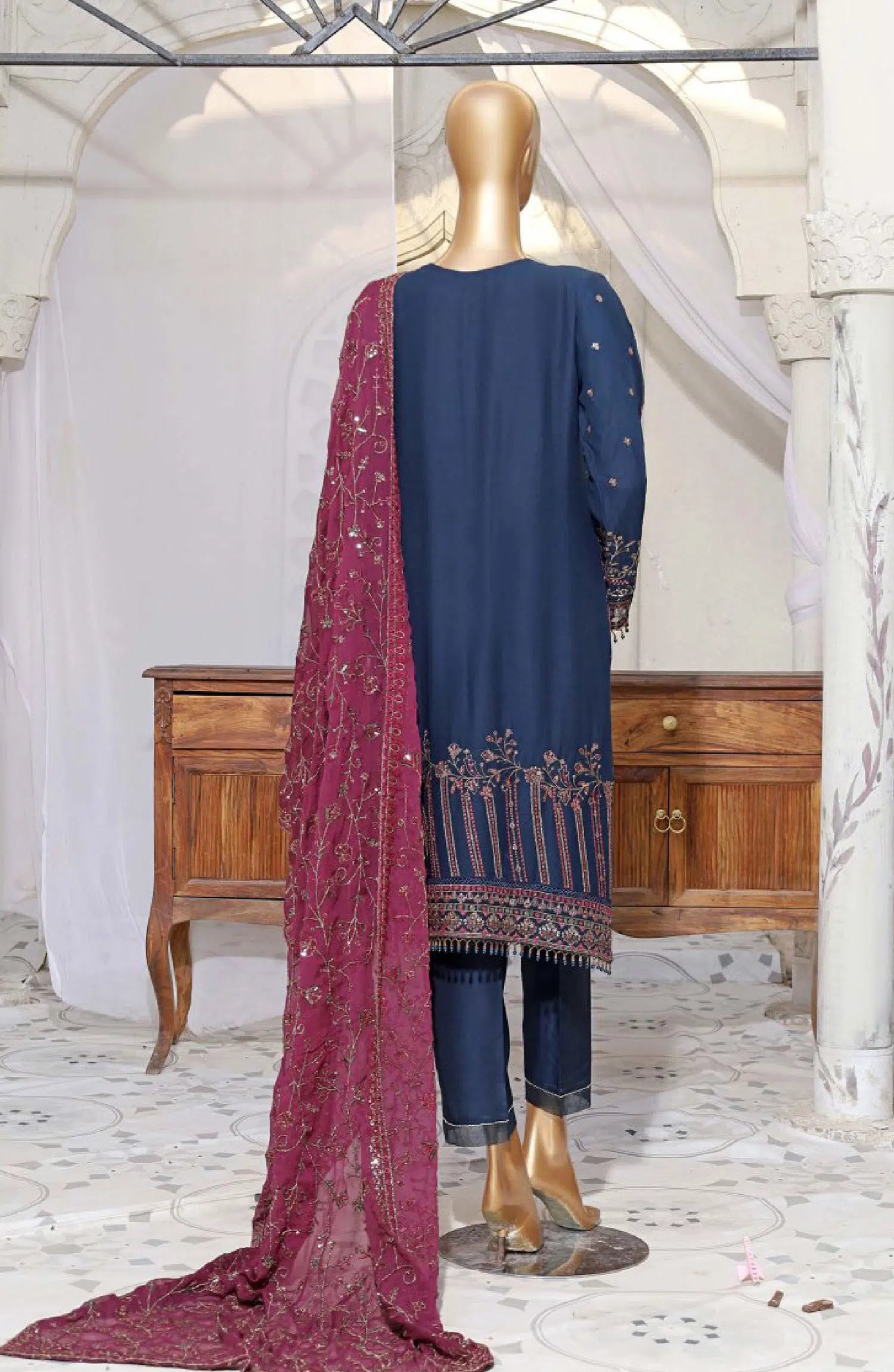 Sadabahar Premium Embroidered Cross Texture Stitched 3 Piece Suit - Design-03 - SBD25FEST - Blue - Winter Collection