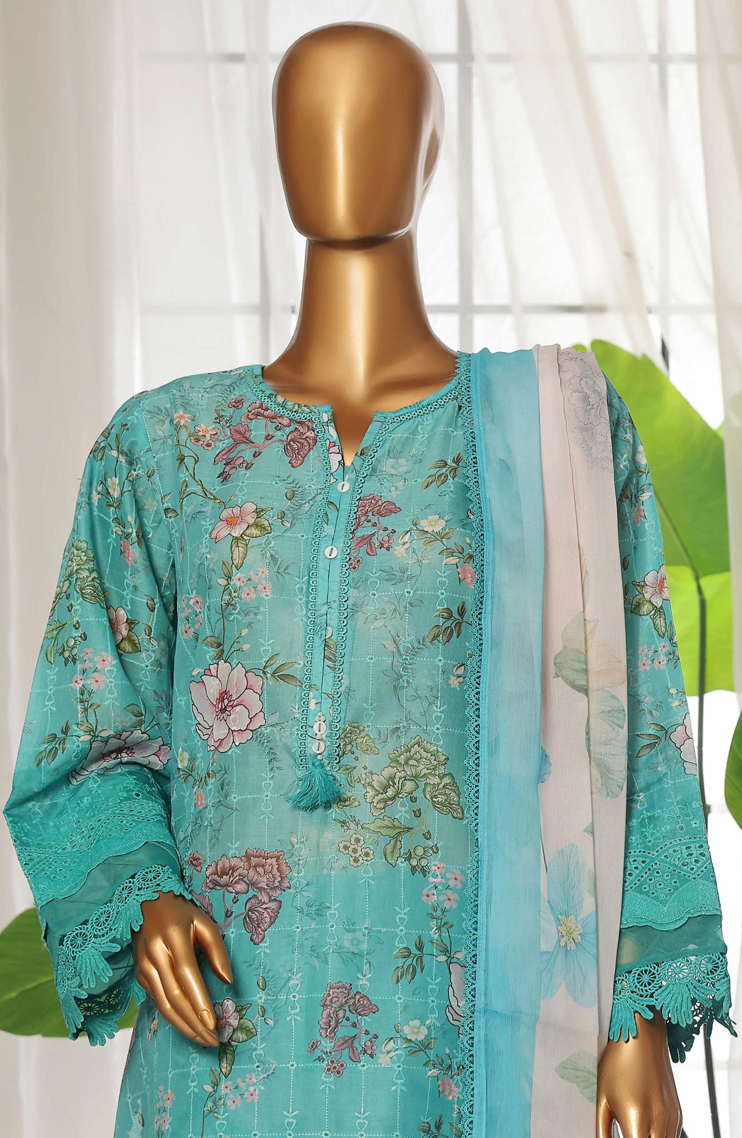 Sadabahar Chikankari Lawn Stitched 3 Piece Suit - D-01 - SBD25FC - Blue - Summer Collection