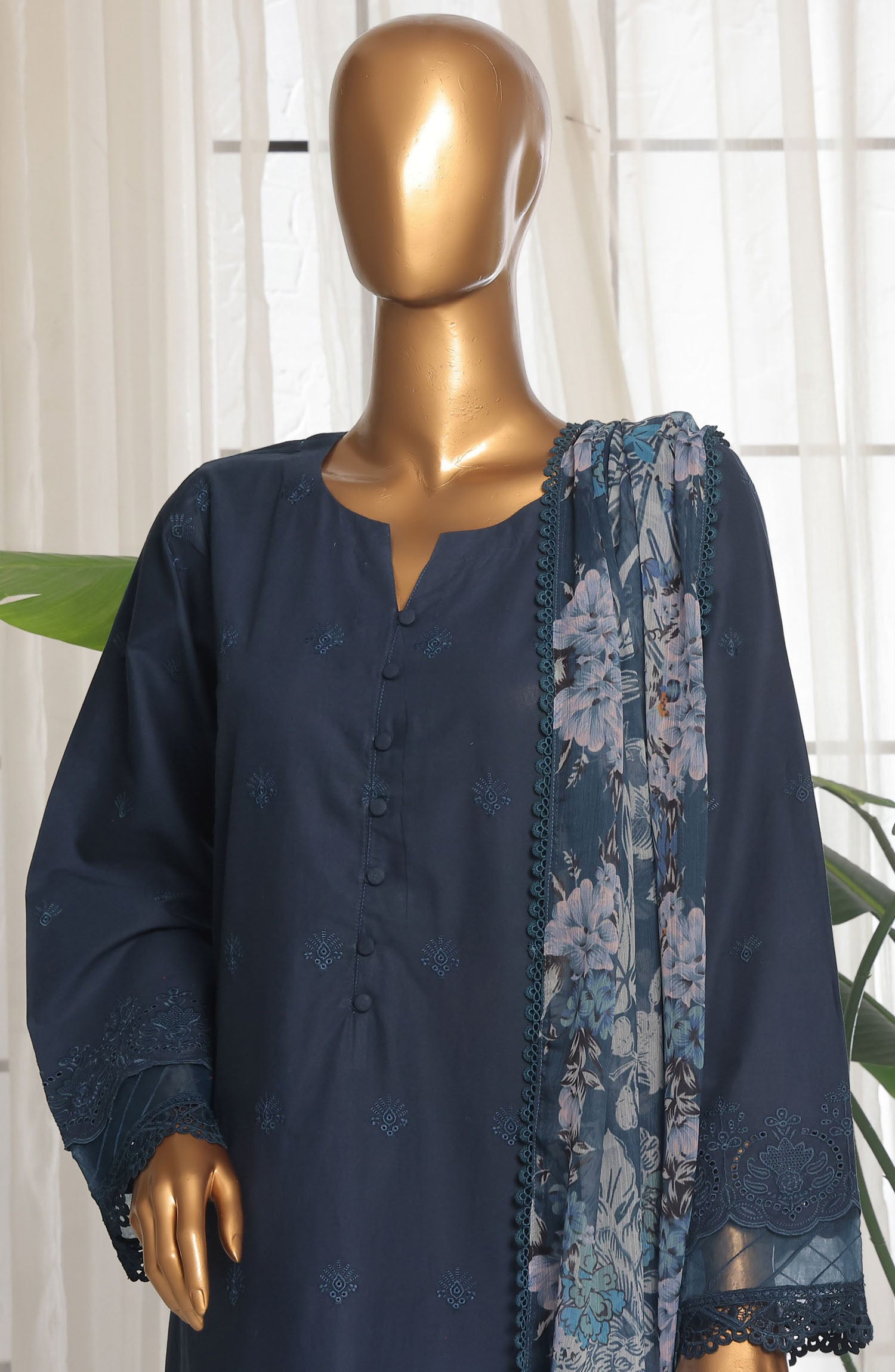 Sadabahar Chikankari Lawn Stitched 3 Piece Suit - D-02 - SBD25CLC - Blue - Summer Collection
