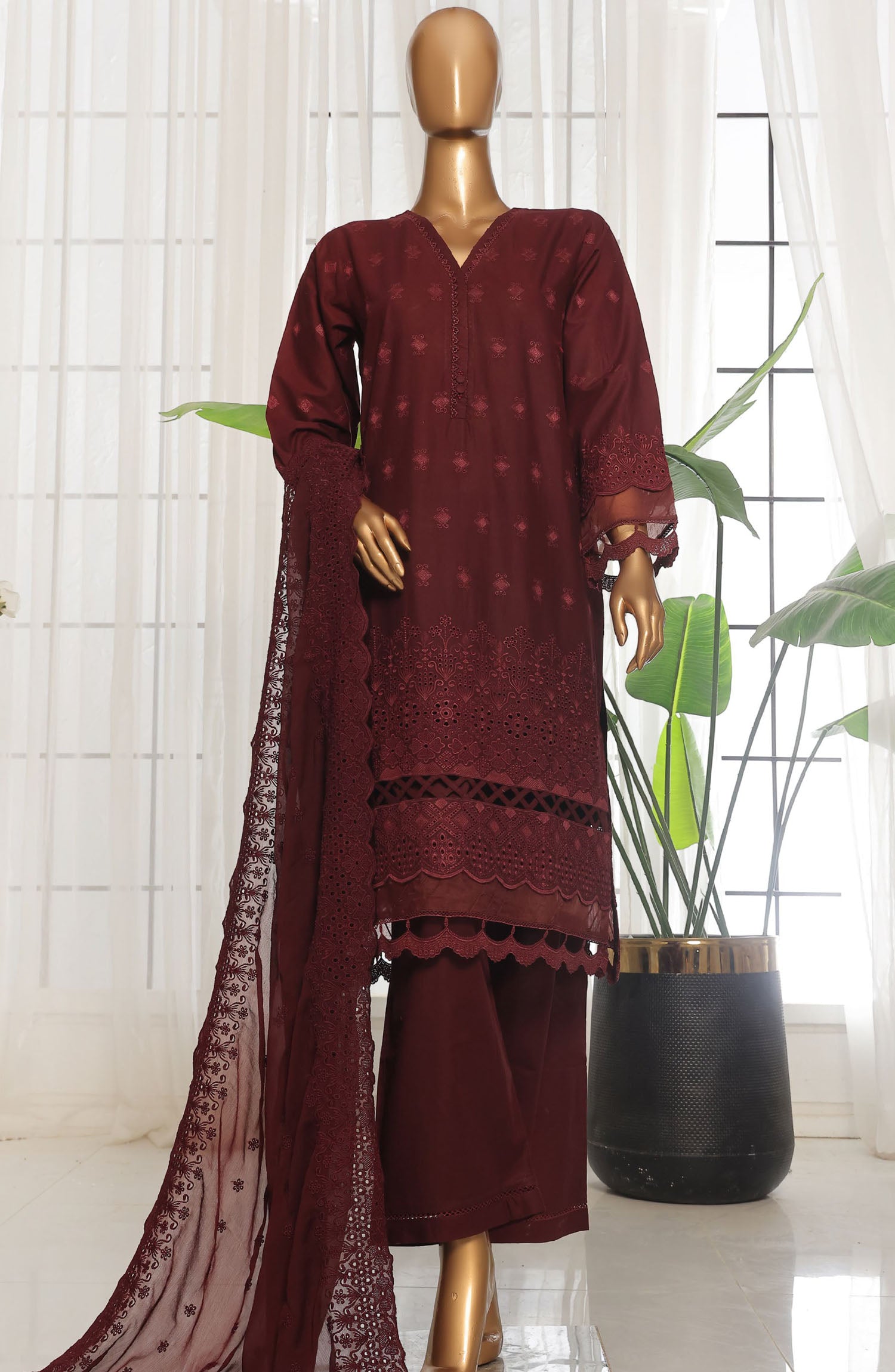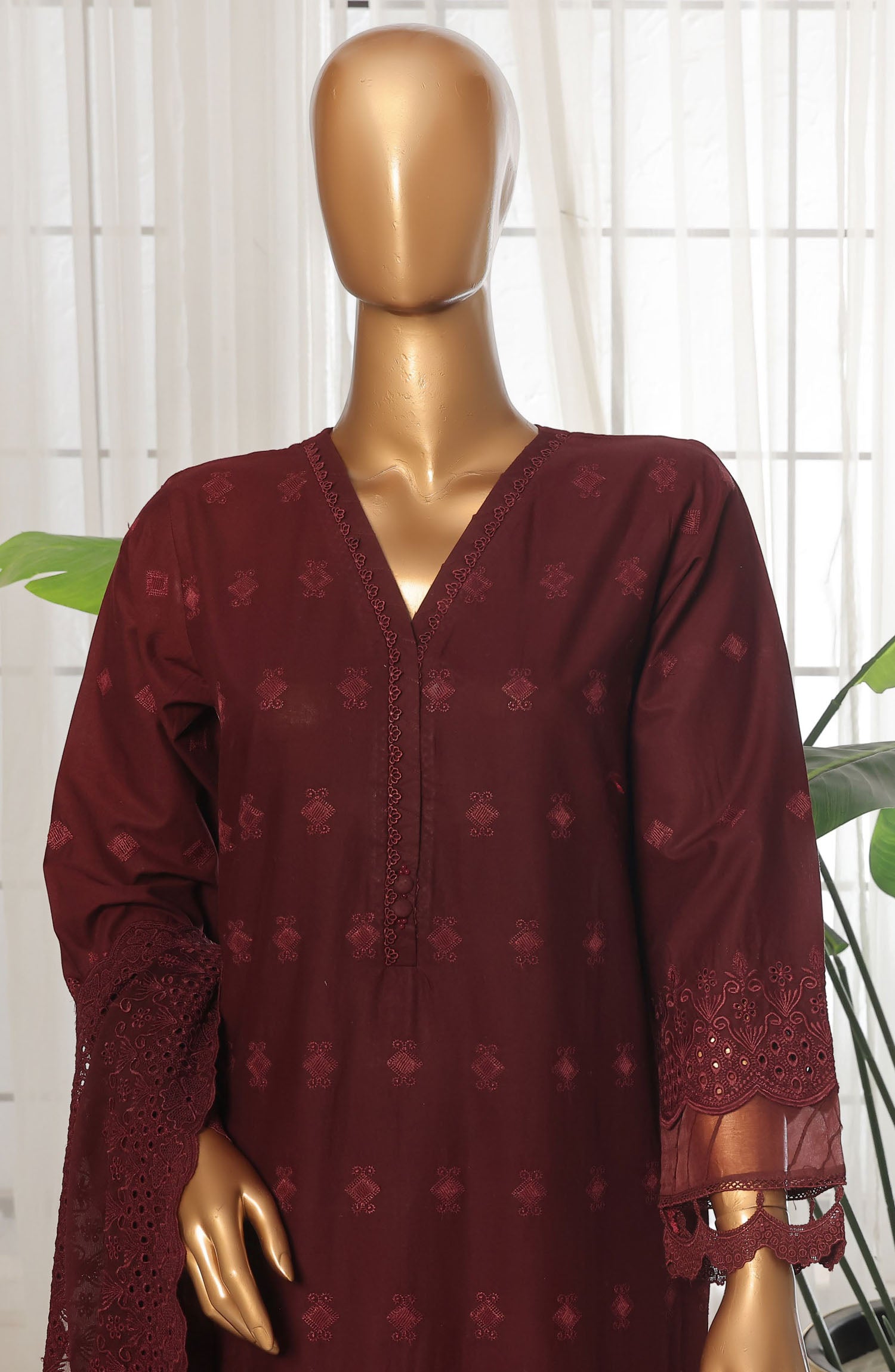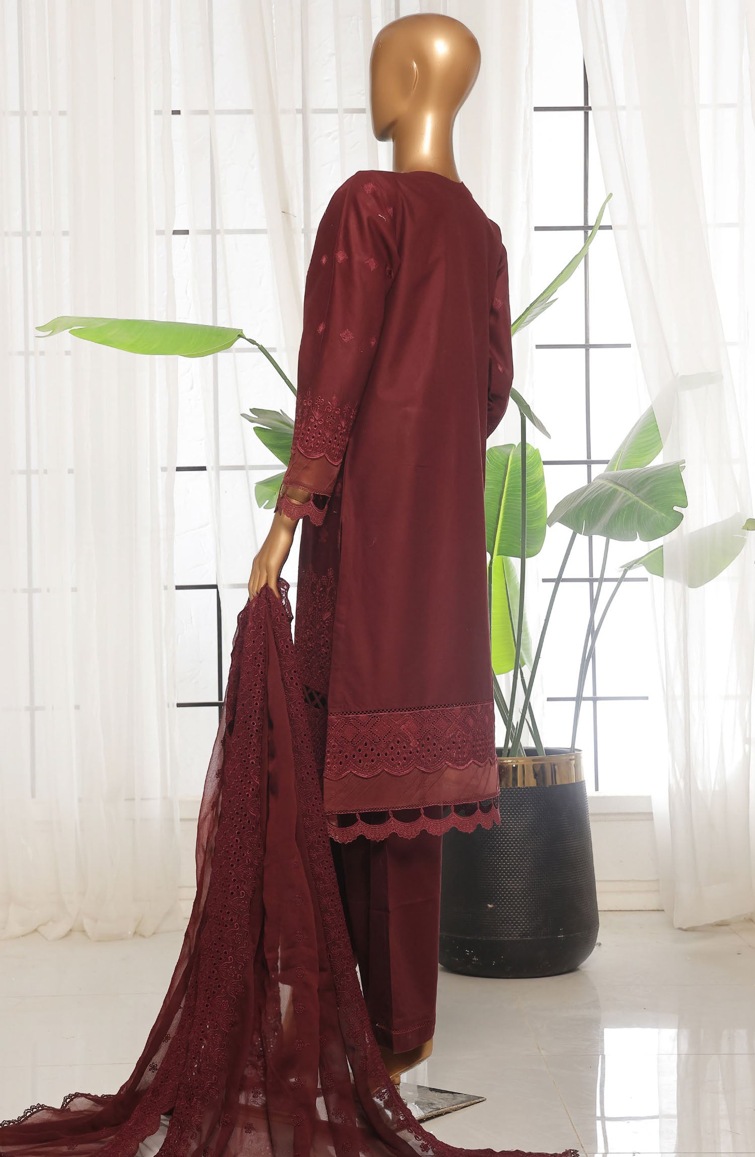 Modest Embroidered Khaddar Stitched 3 Piece Suit - 10050-Mar - MOD25WNT - Maroon - Winter Collection