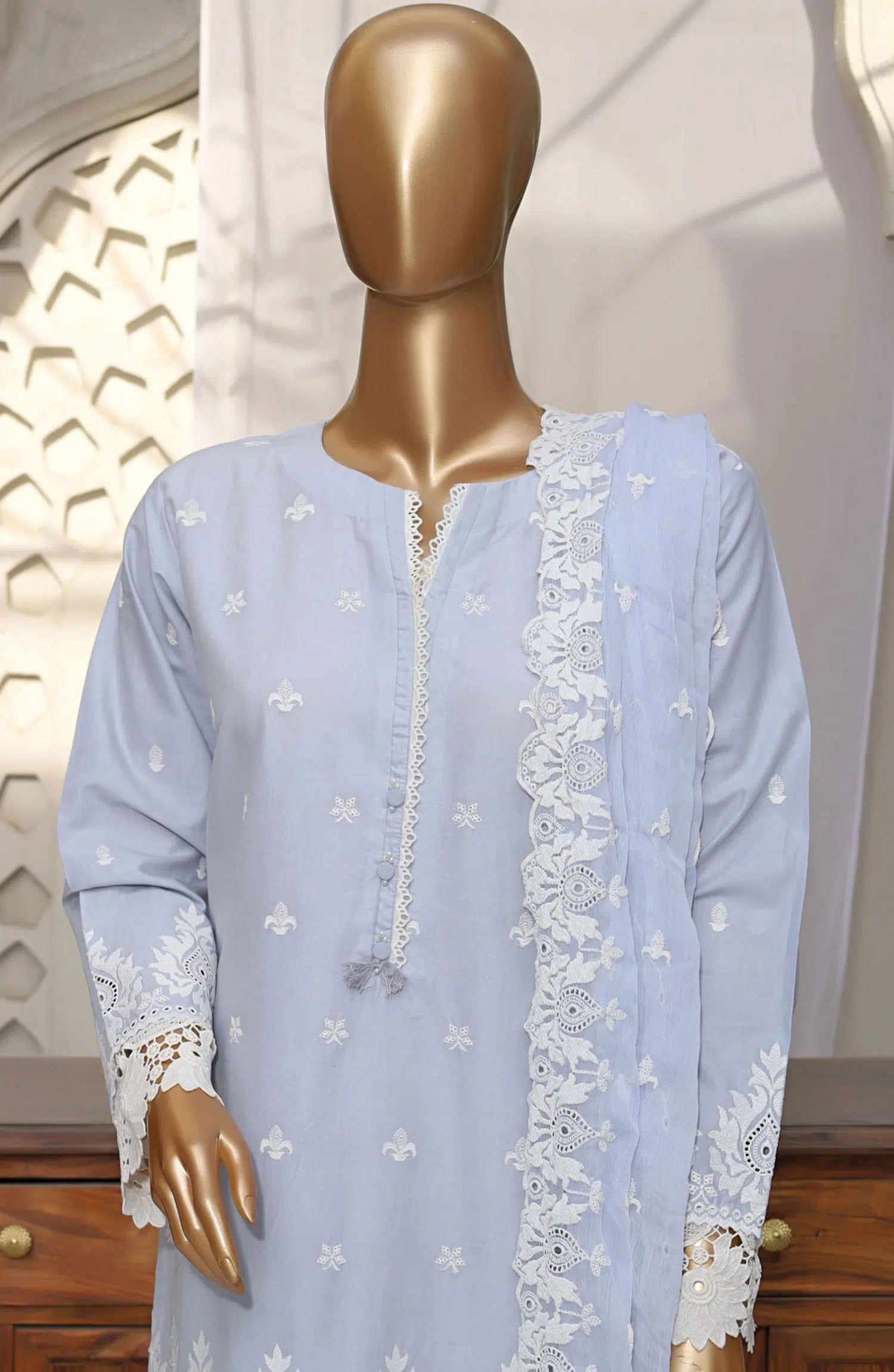 Chikankari Embroidered Stitched lawn suit with Embroidered Chiffon Dupatta