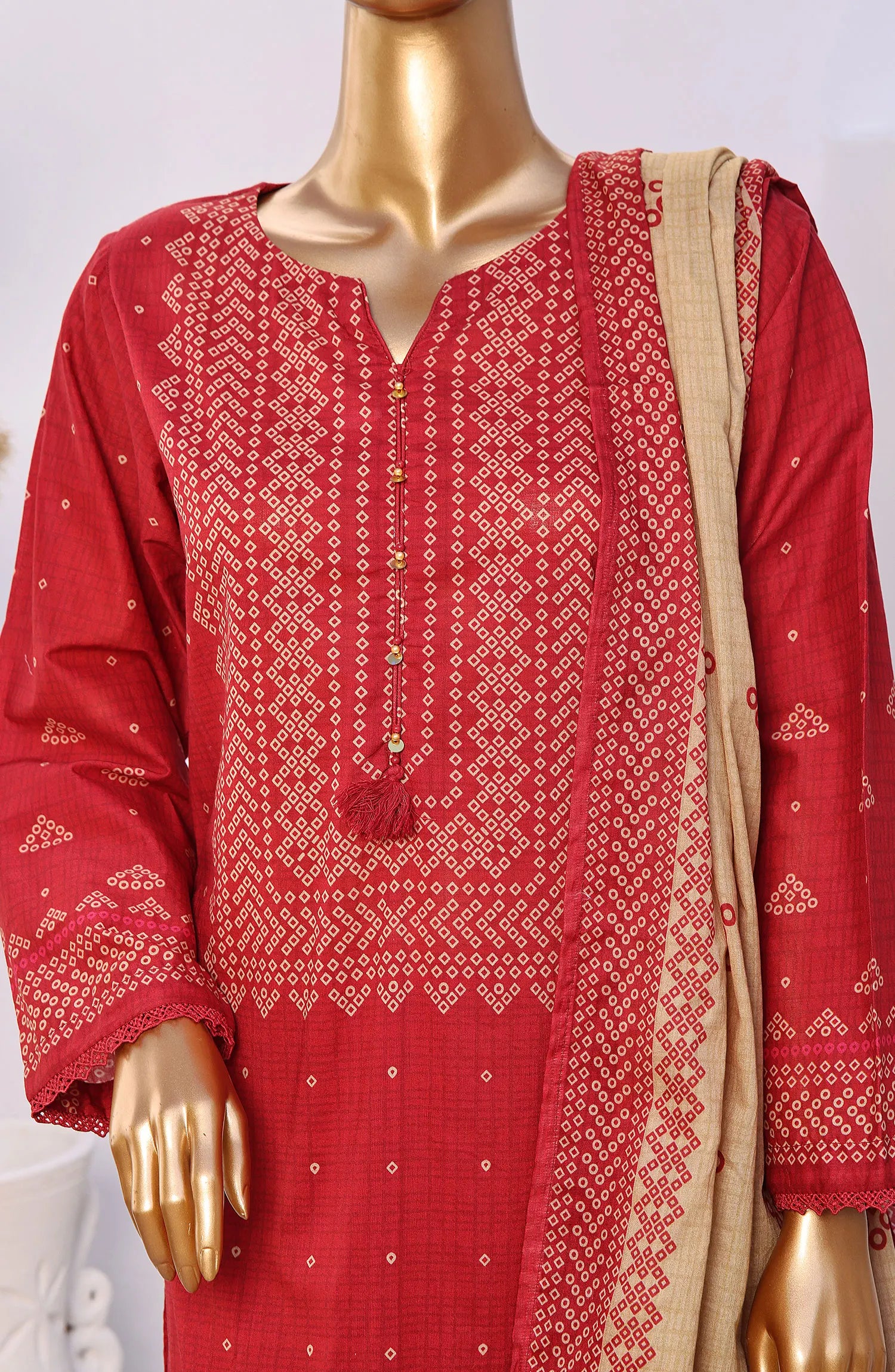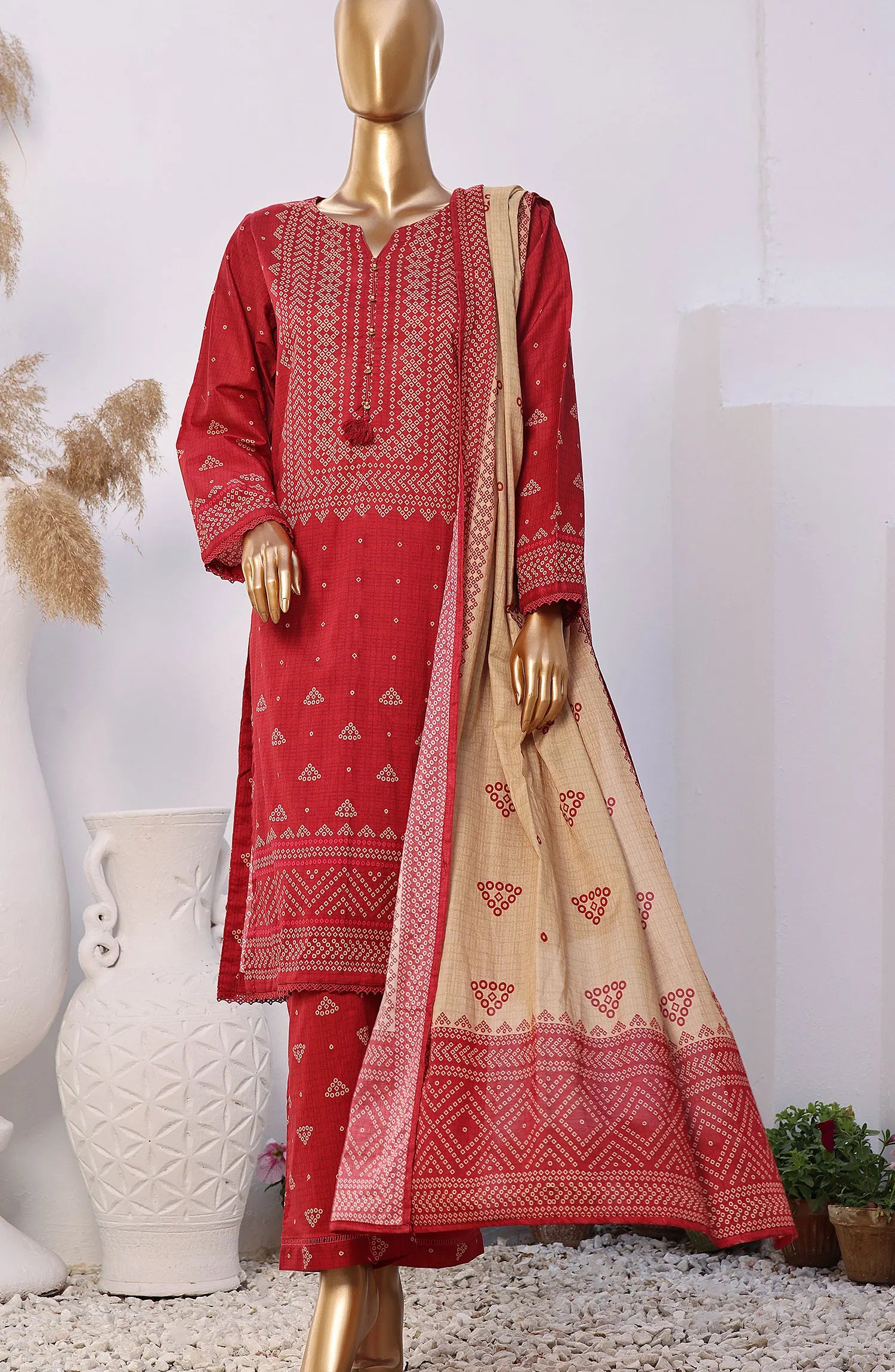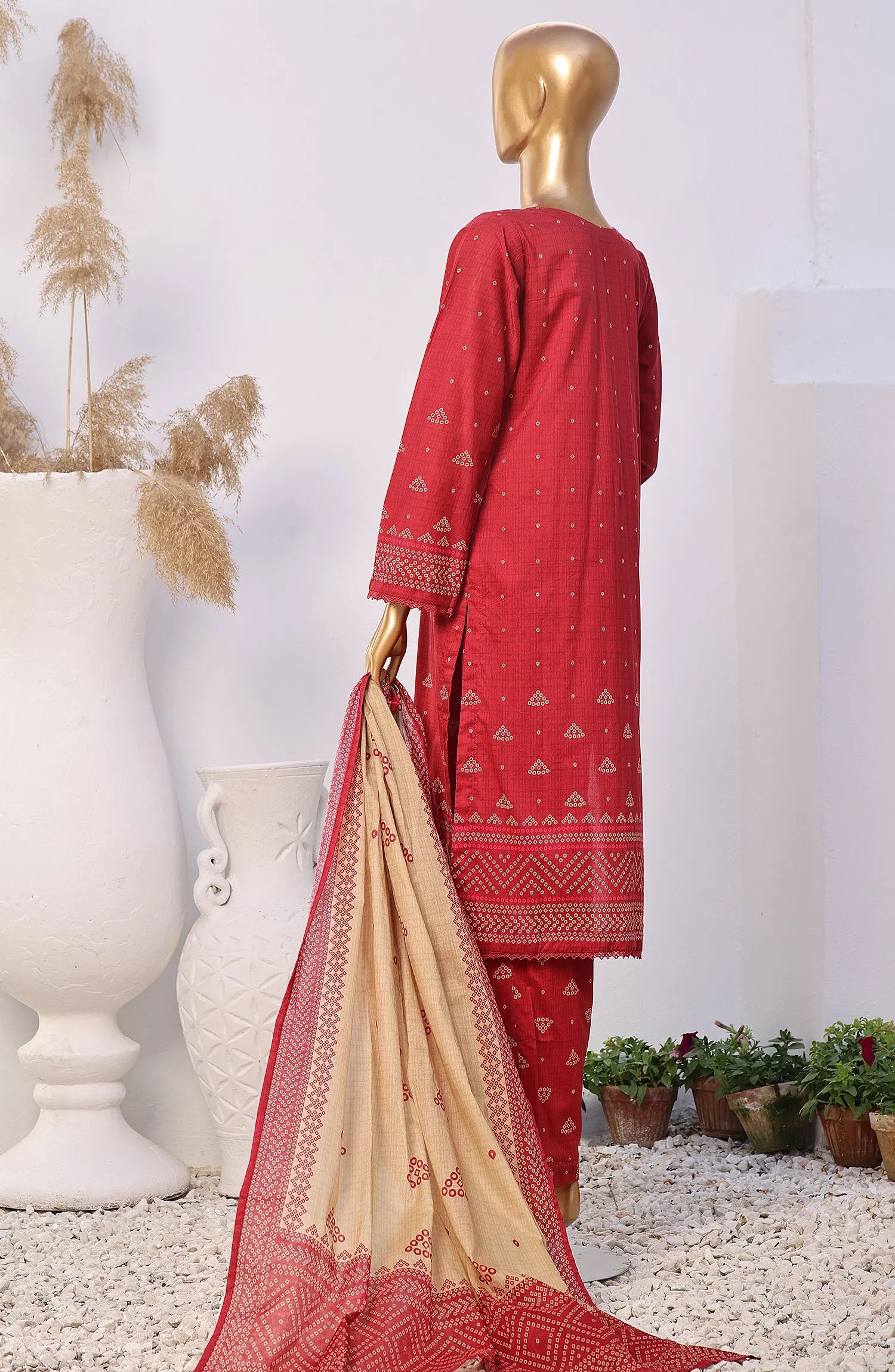 Sadabahar Premium Embroidered Cross Texture Stitched 3 Piece Suit - Design-02 - SBD25FEST - Red - Winter Collection