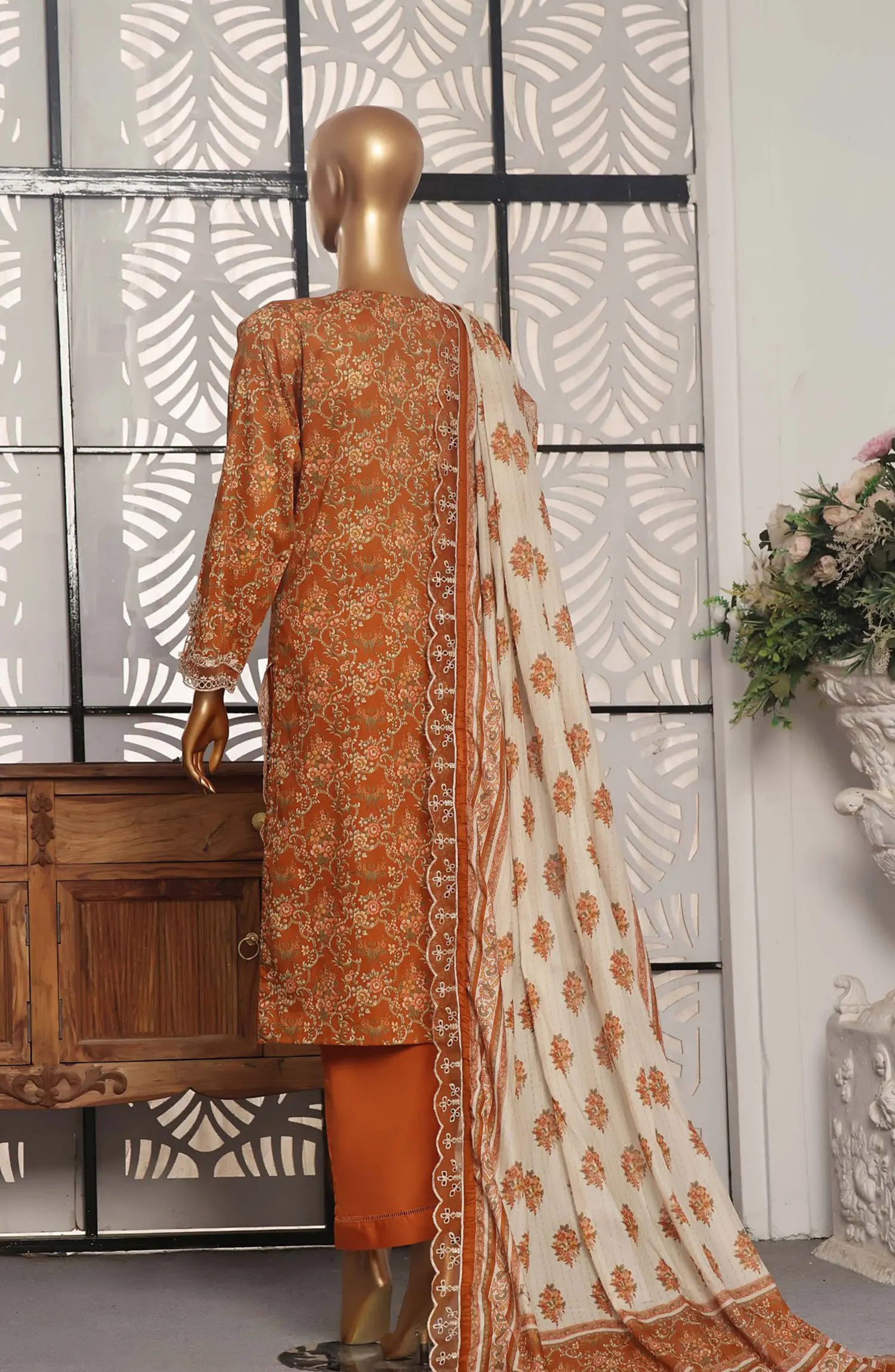 3 piece stitched printed and cutwork embroidered lawn suit
