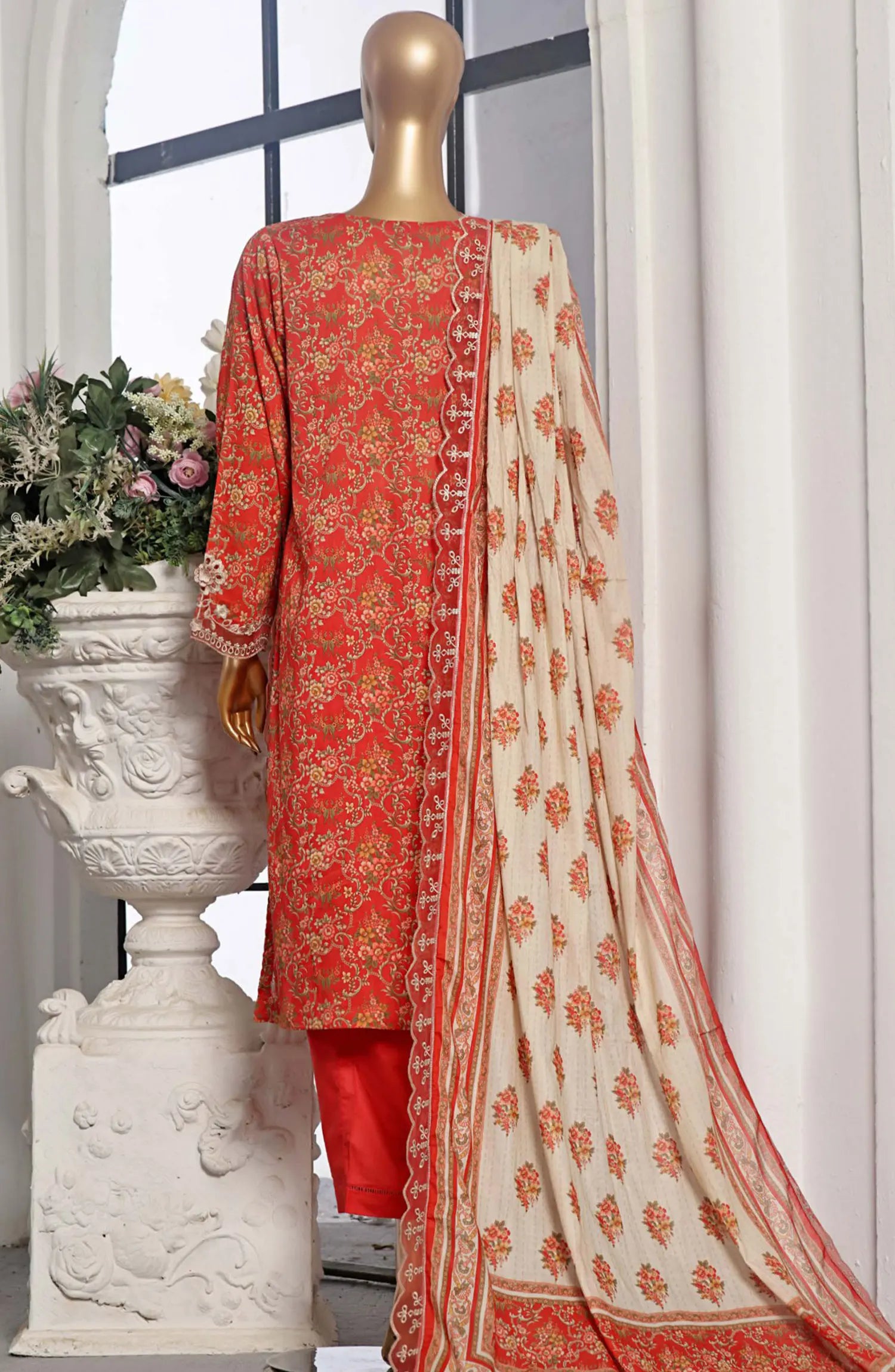 Sadabahar Premium Embroidered Cross Texture Stitched 3 Piece Suit - Design-02 - SBD25FEST - Red - Winter Collection