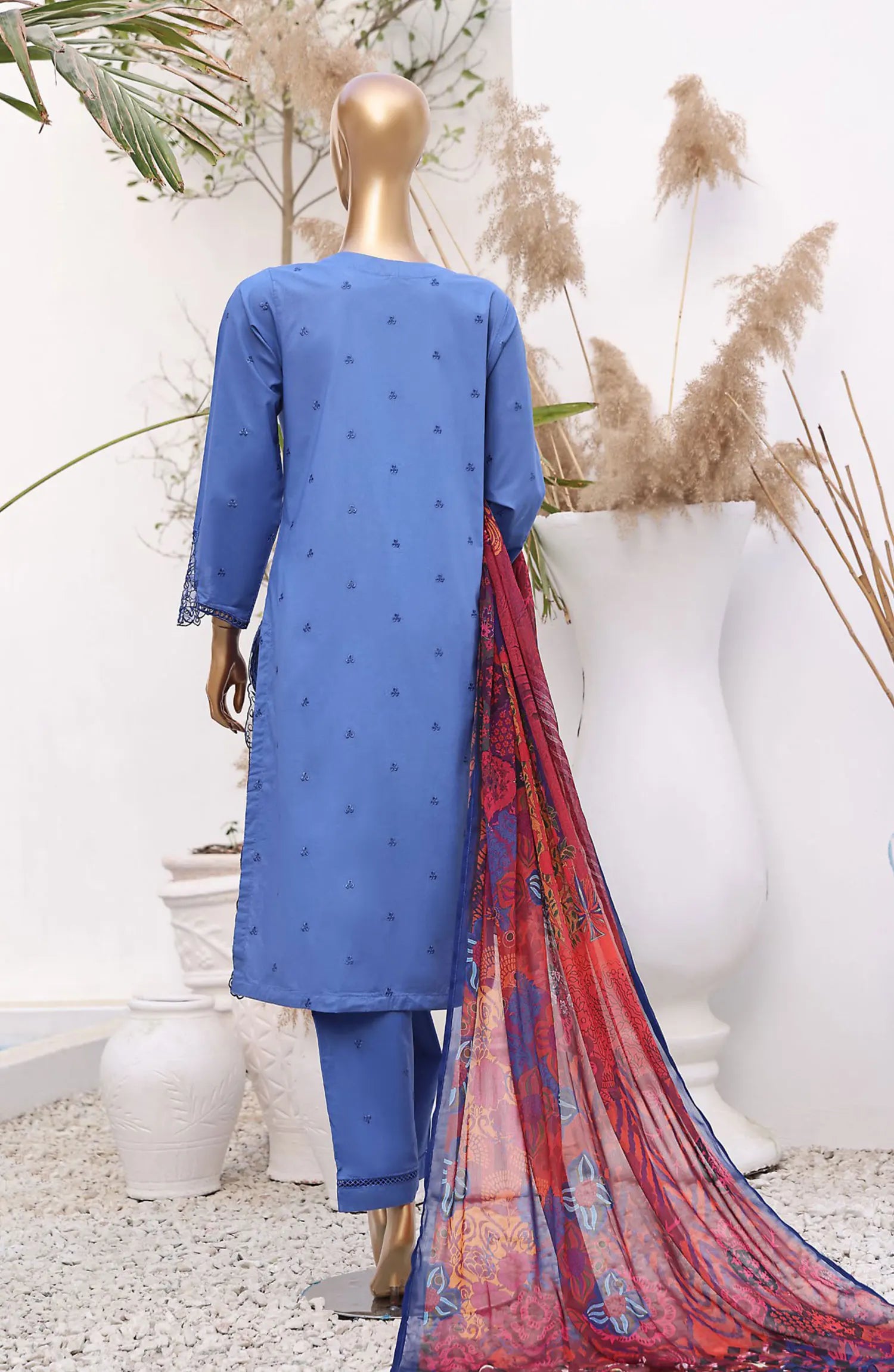 Sadabahar Premium Embroidered Cross Texture Stitched 3 Piece Suit - Design-03 - SBD25FEST - Blue - Winter Collection