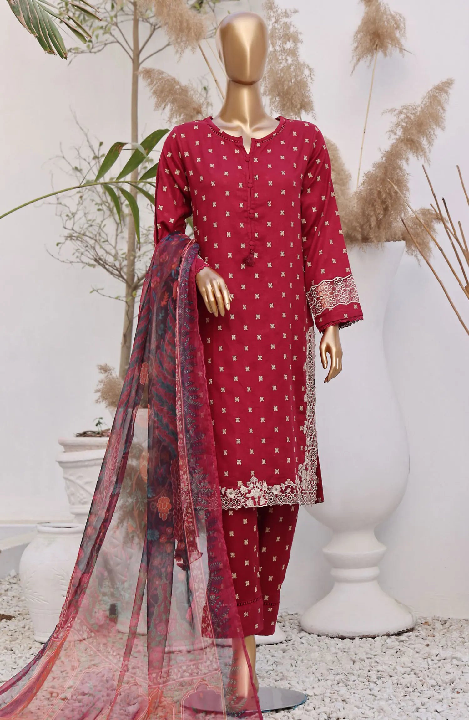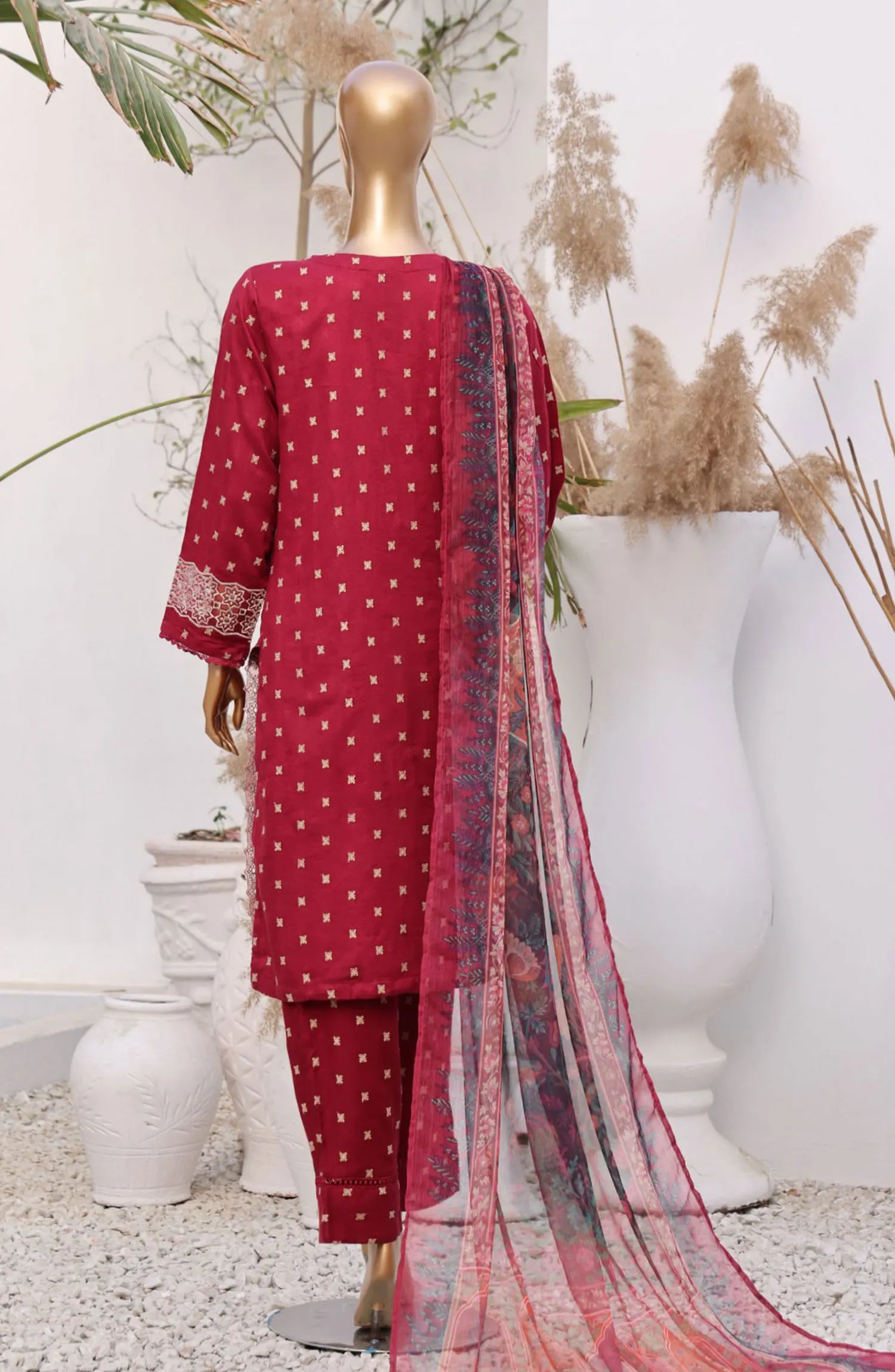 Sadabahar Premium Embroidered Cross Texture Stitched 3 Piece Suit - Design-02 - SBD25FEST - Red - Winter Collection