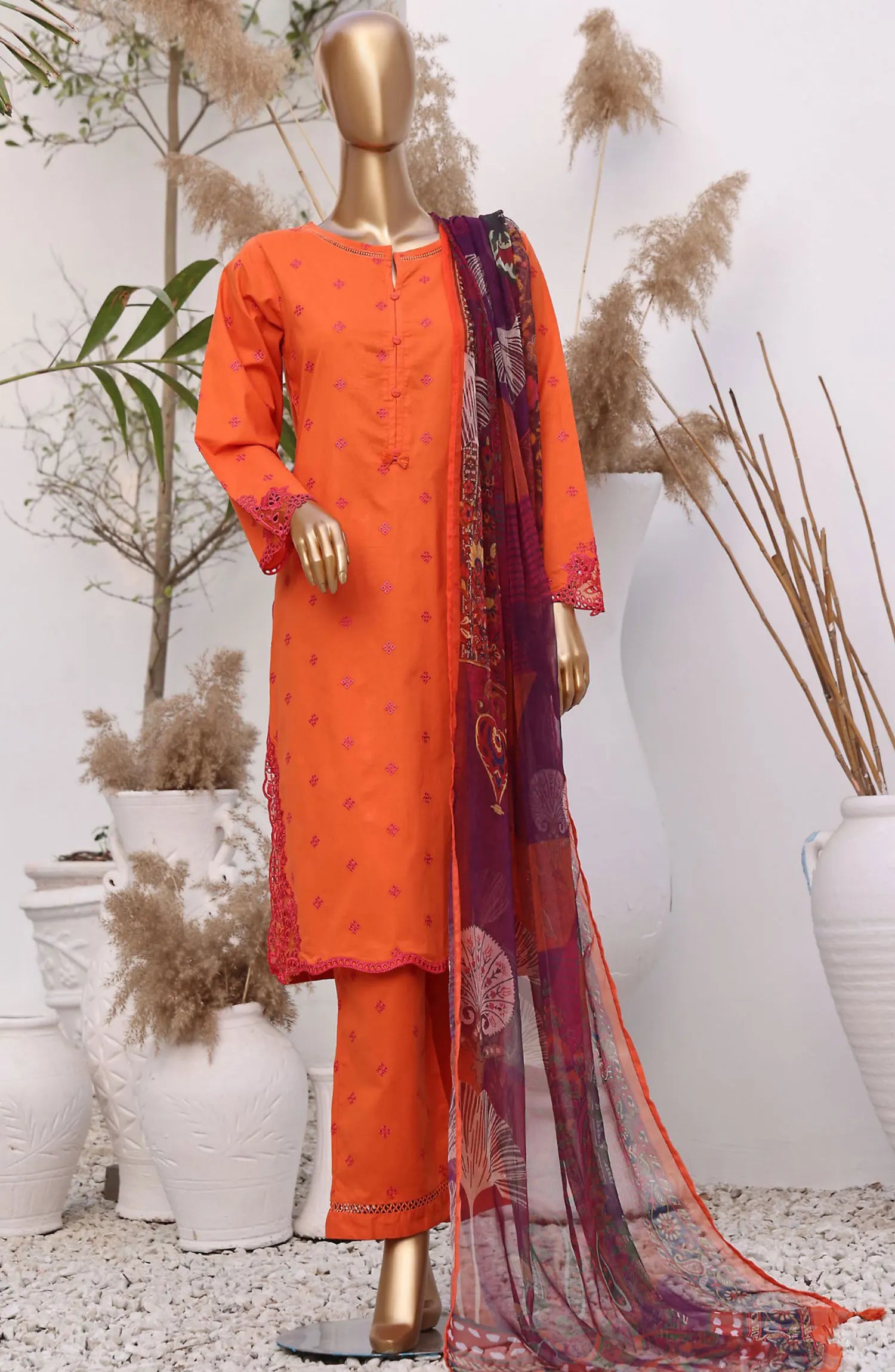 Cutwork Embroidered Lawn suit with printed chiffon dupatta including embellishments