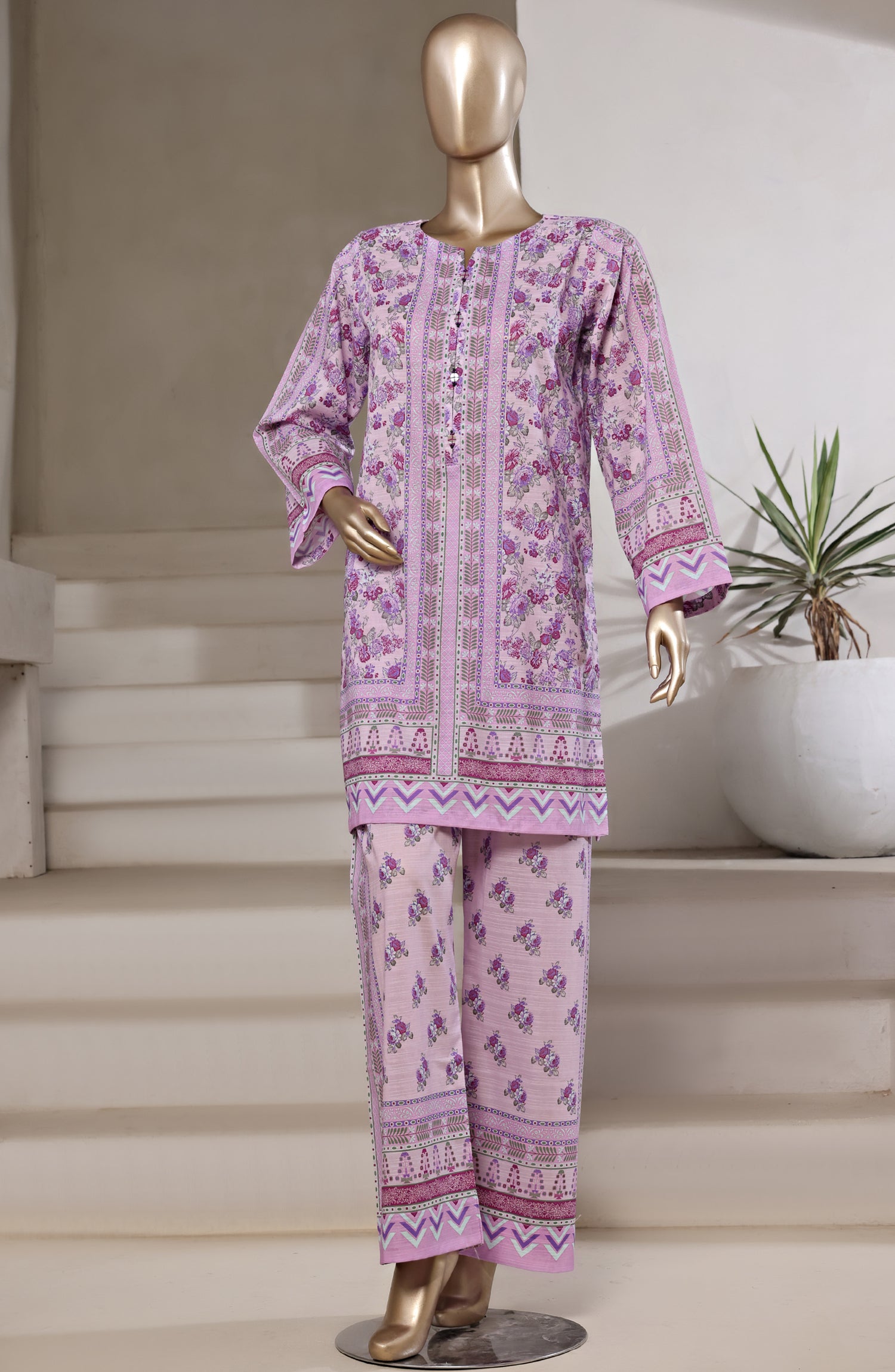 Stitch 2 Piece Digital Print Bana Dora Cotton Co-ord Set with Embellishments