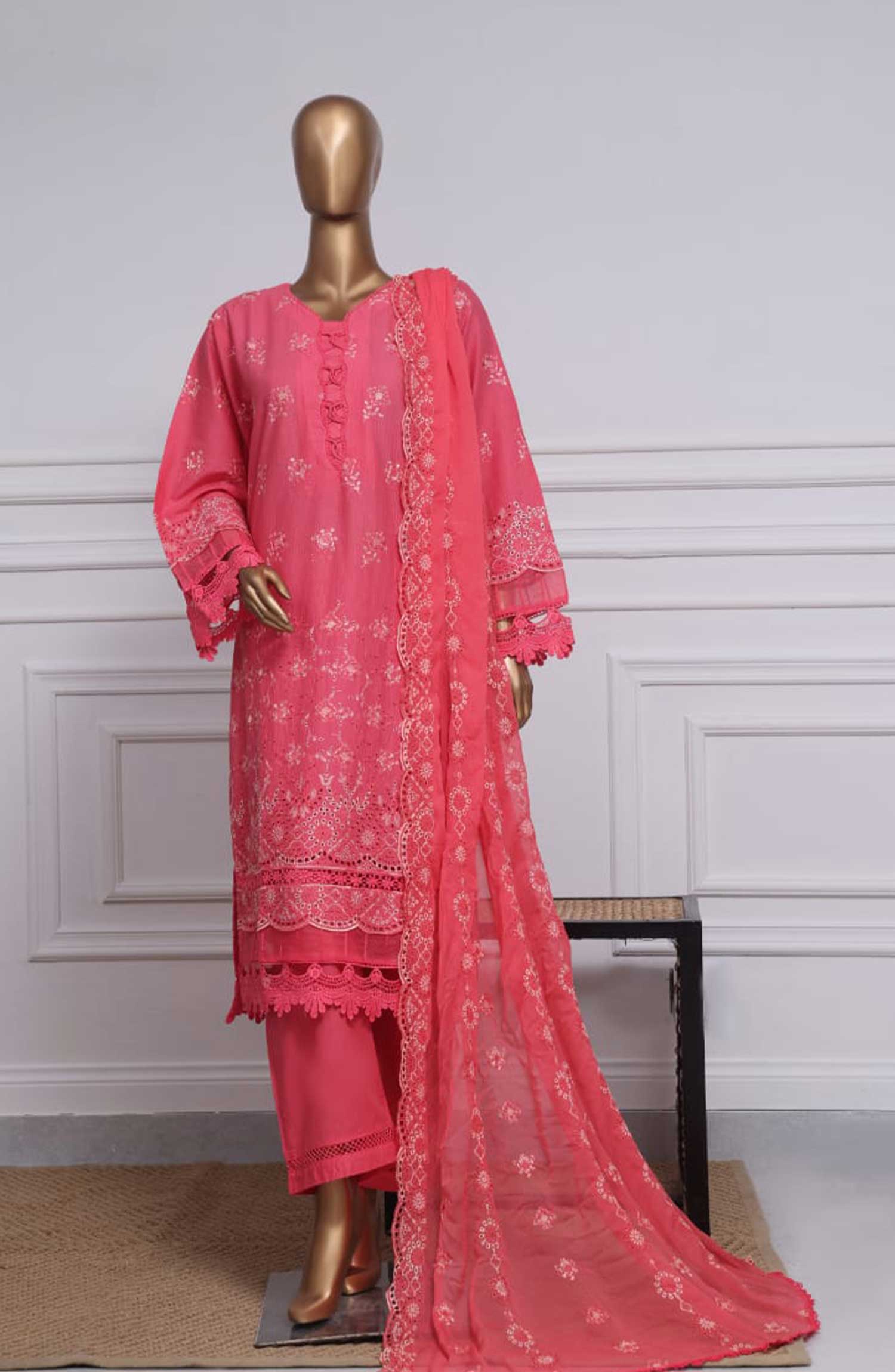 Home Sadabahar Embroidered Chikankari Stitched 3 Piece - Design 01 - SDB25C - Pink - Summer Collection