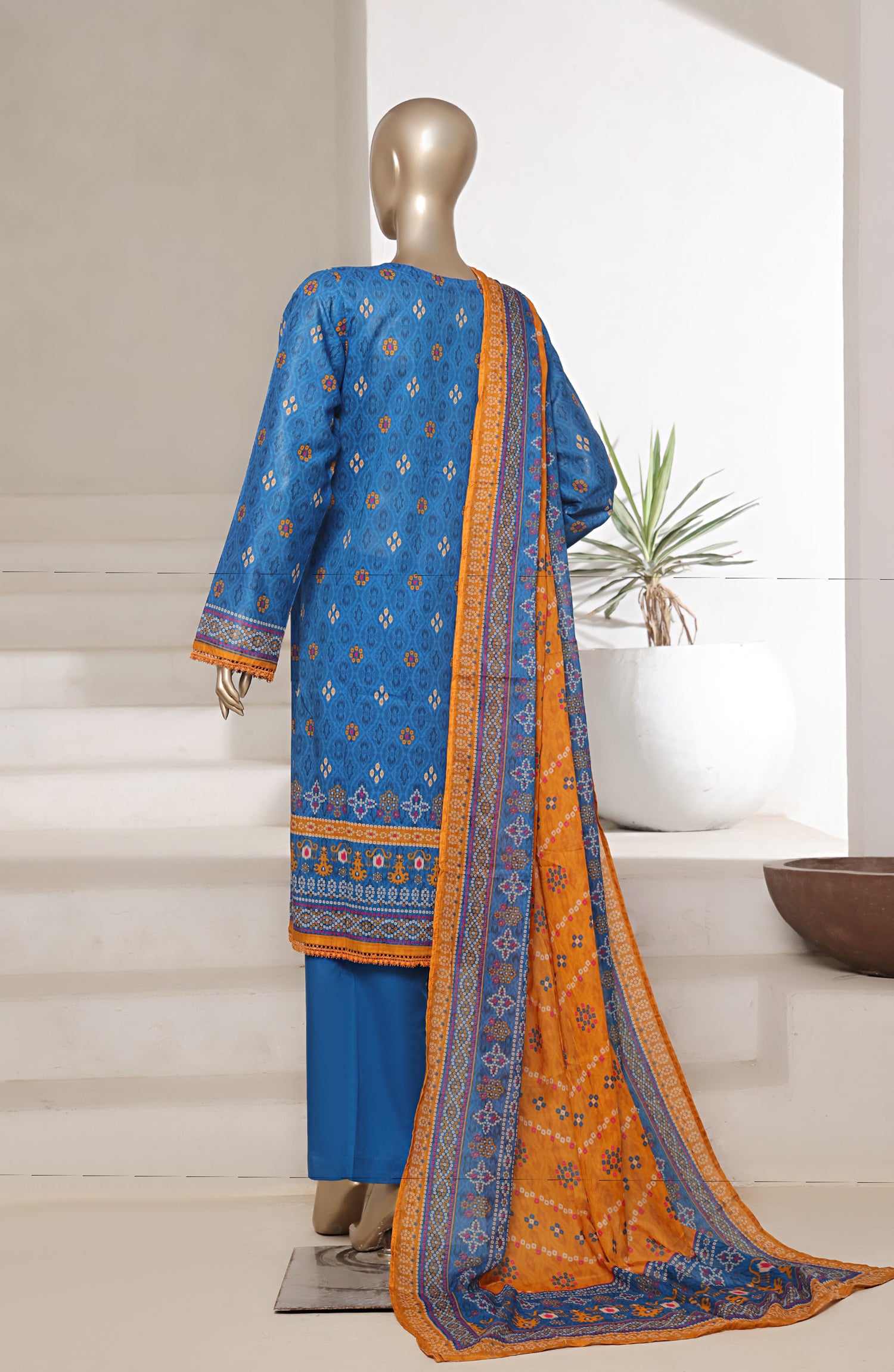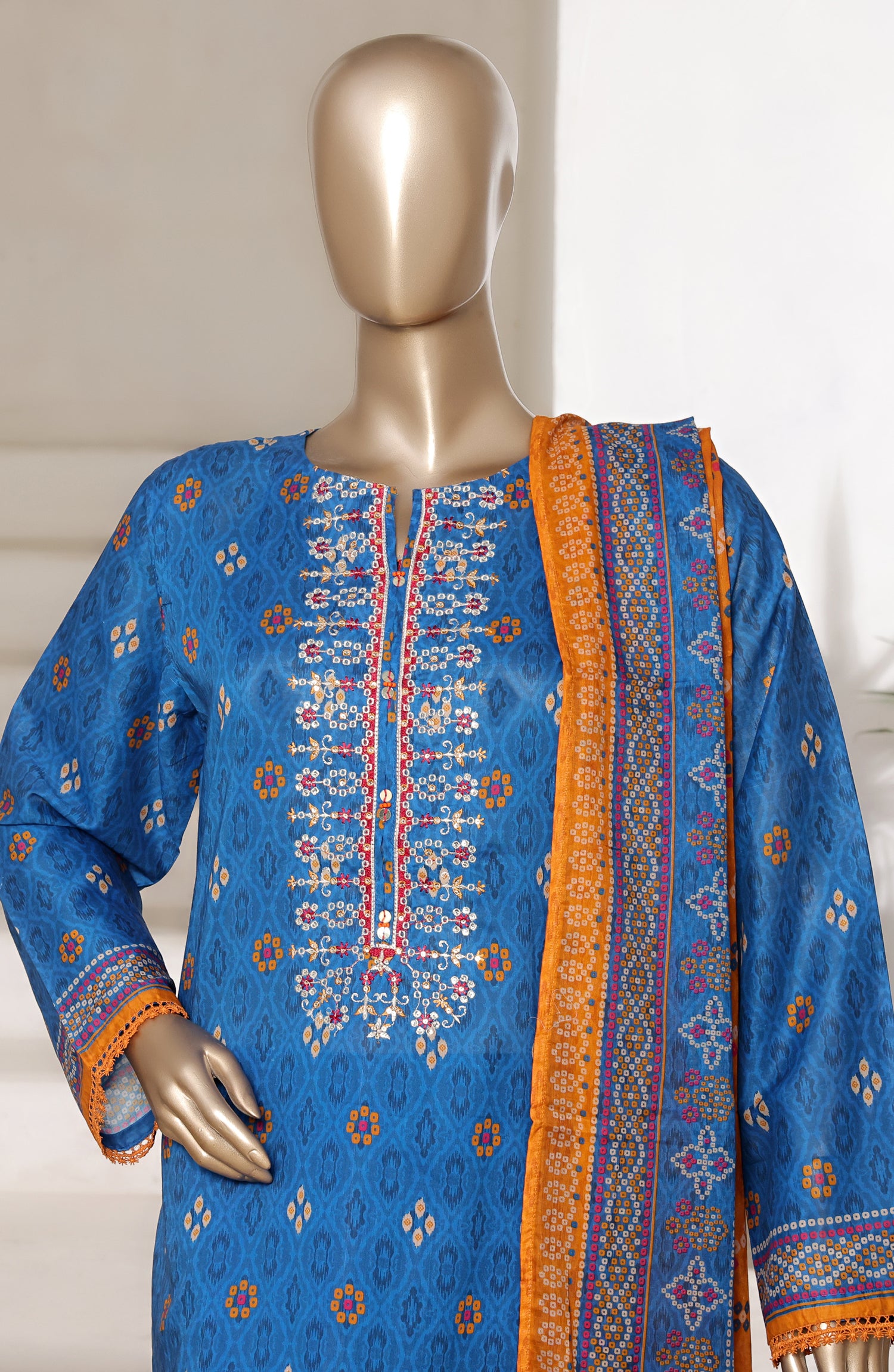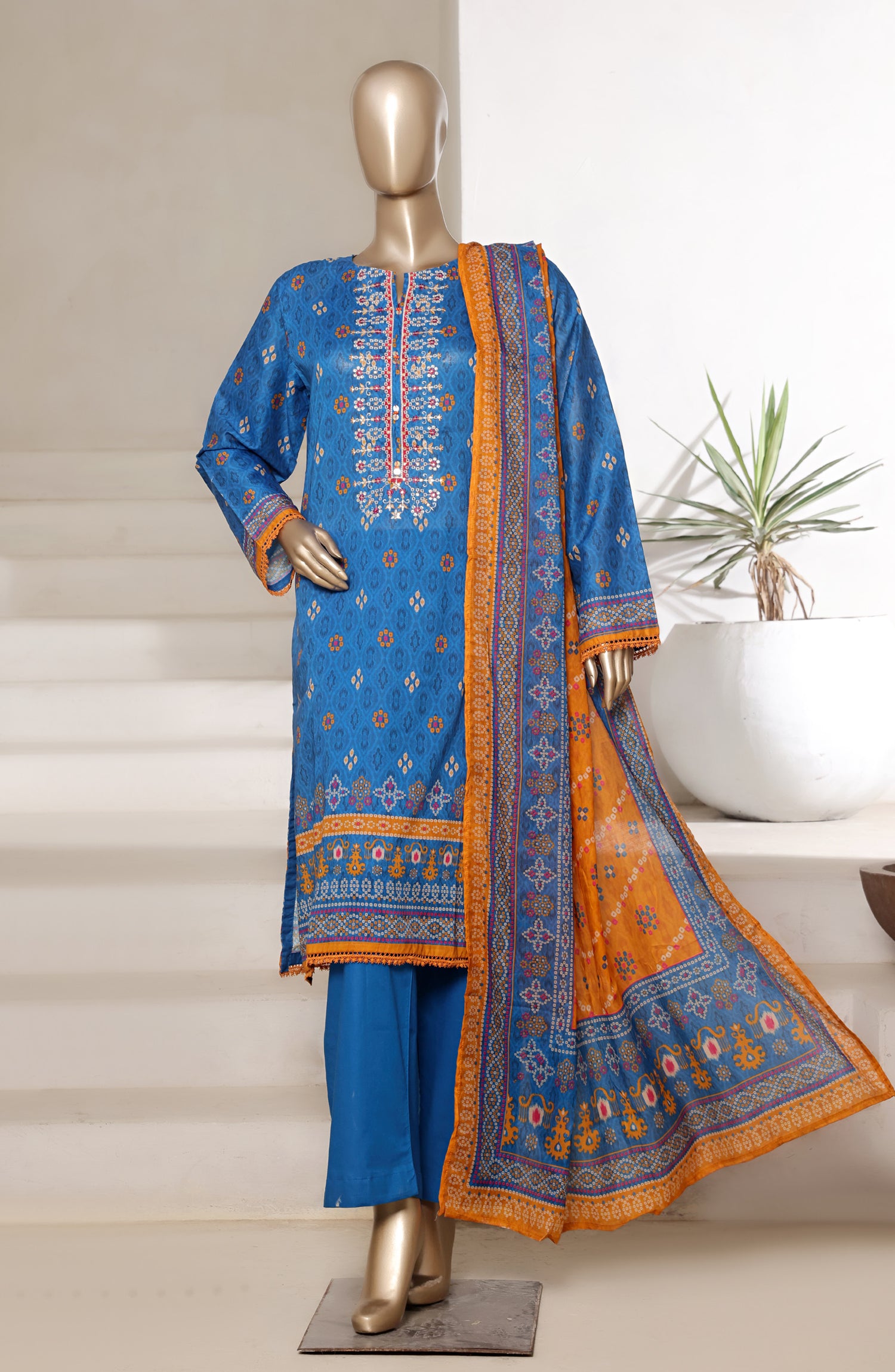 Digital Print and Embroidered Cotton Lawn 3 Piece Stitch Suit with Embellishments