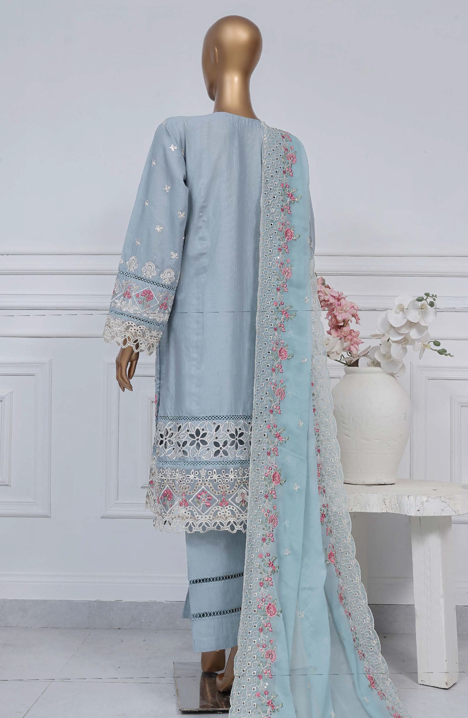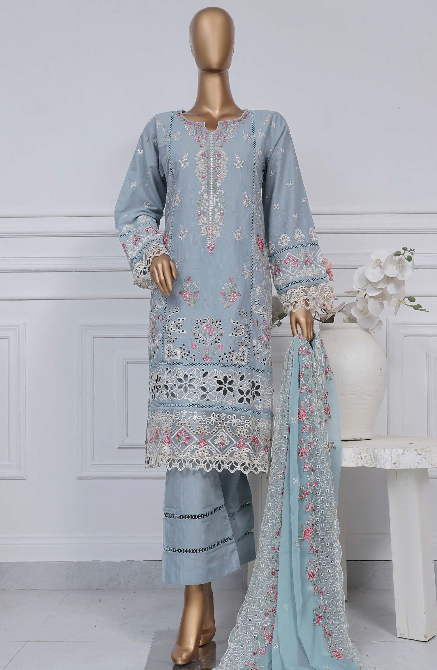 Home Sadabahar Embroidered Cotton Stitched 3 Piece Suit - D-01 - SB25LES - Blue - Spring Collection