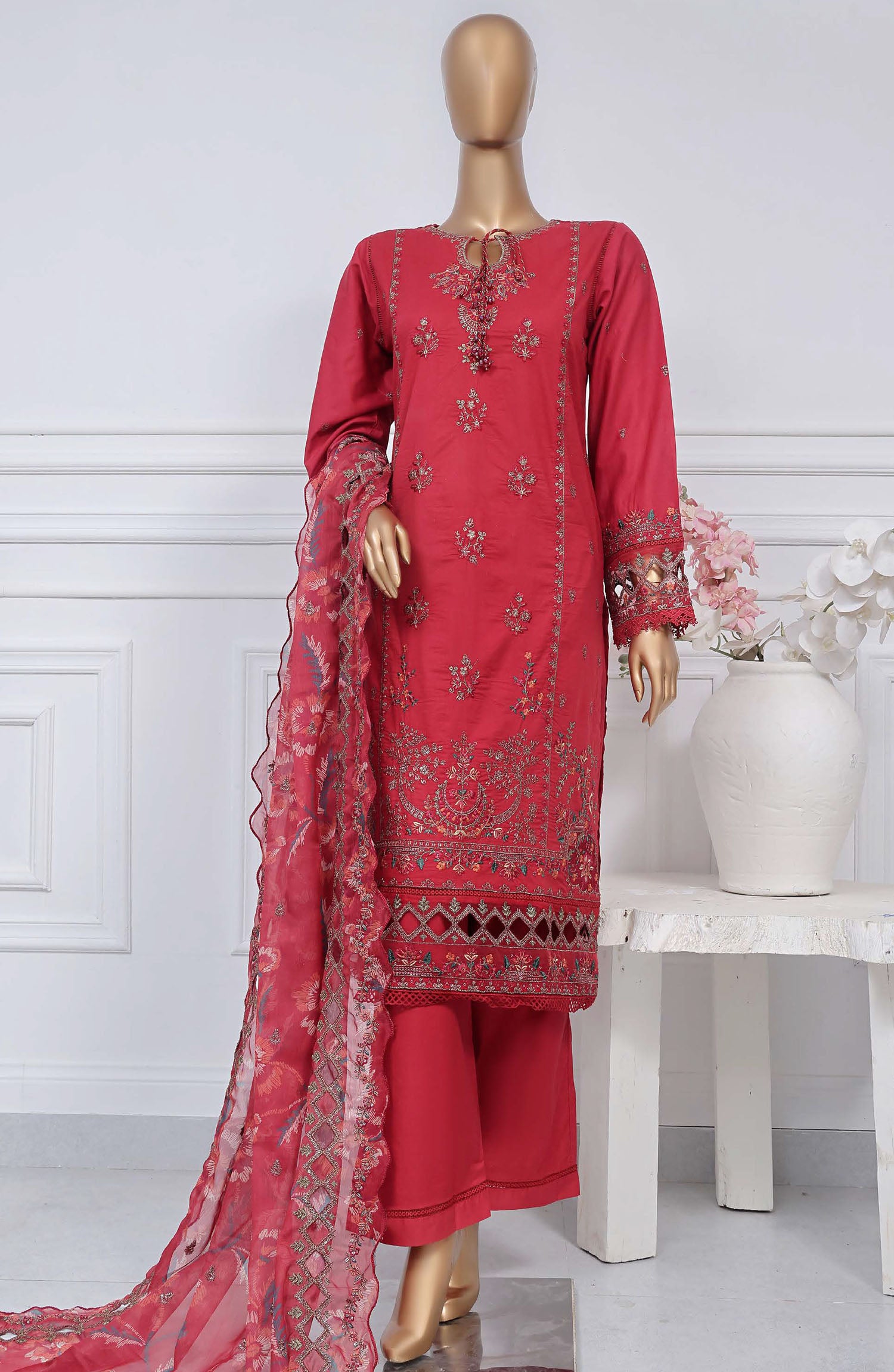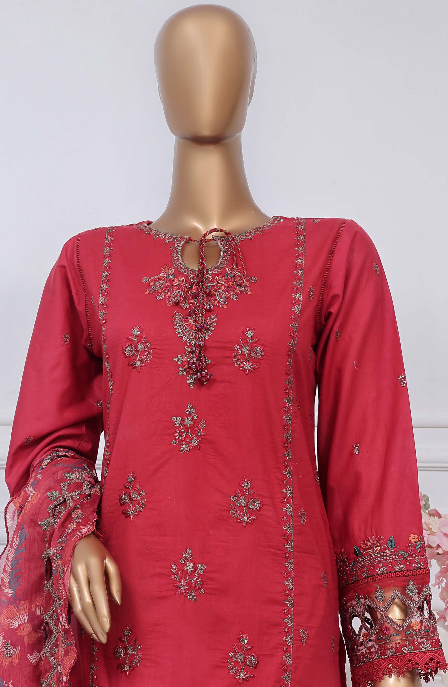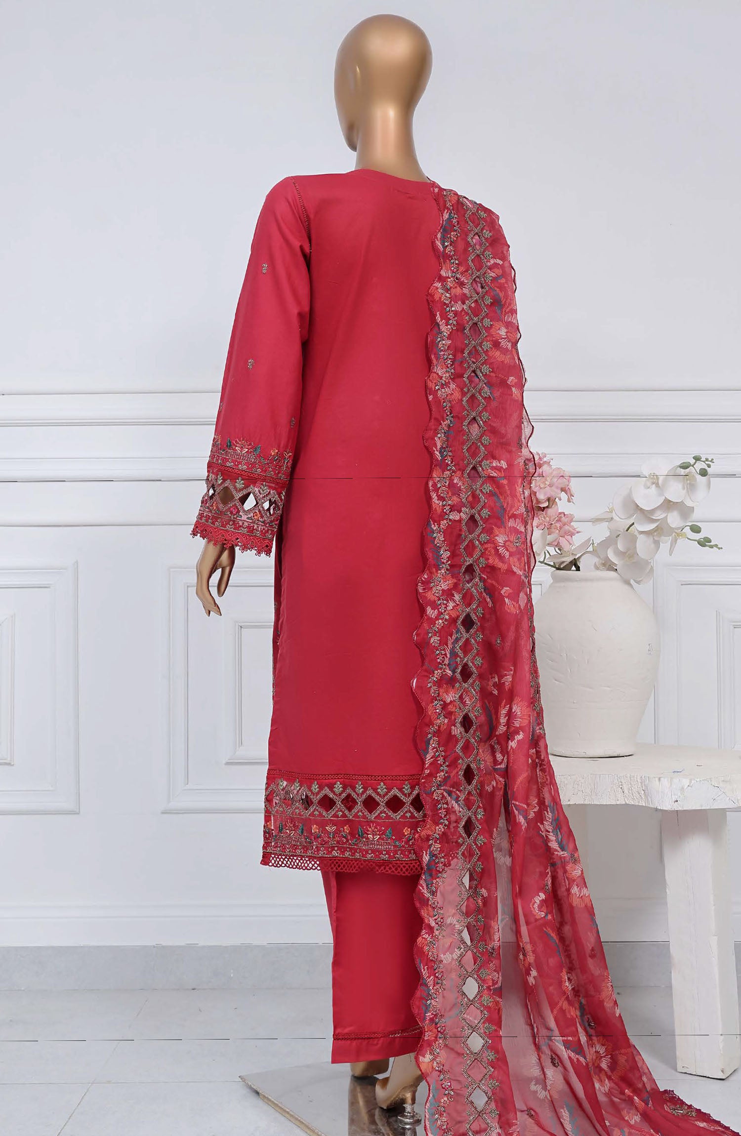 Home Sadabahar Embroidered Cotton Stitched 3 Piece Suit - D-02 - SB25LES - Red - Spring Collection