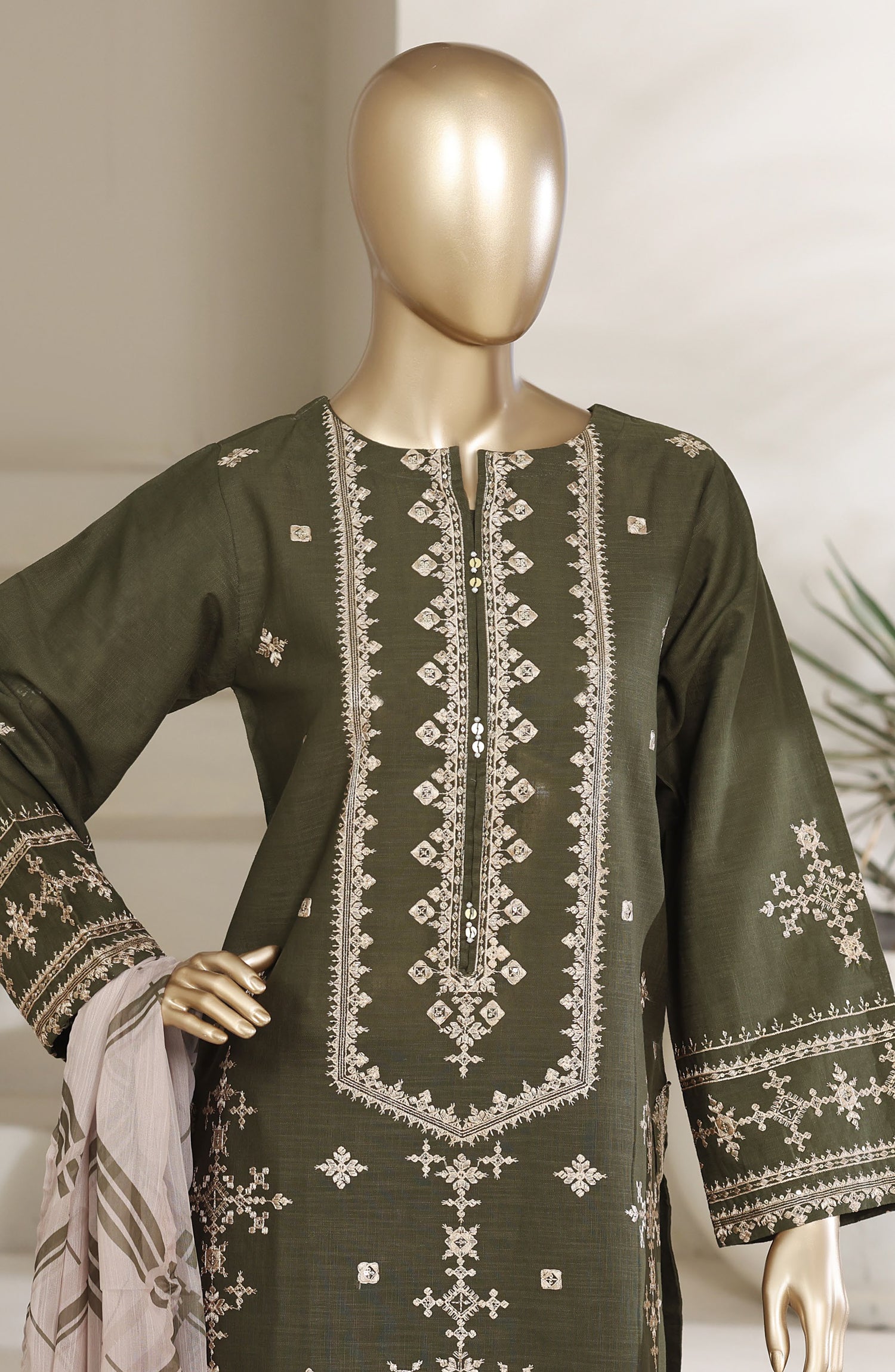 Festive Embroidered Cotton Stitched Co-ords Sets with Dupatta