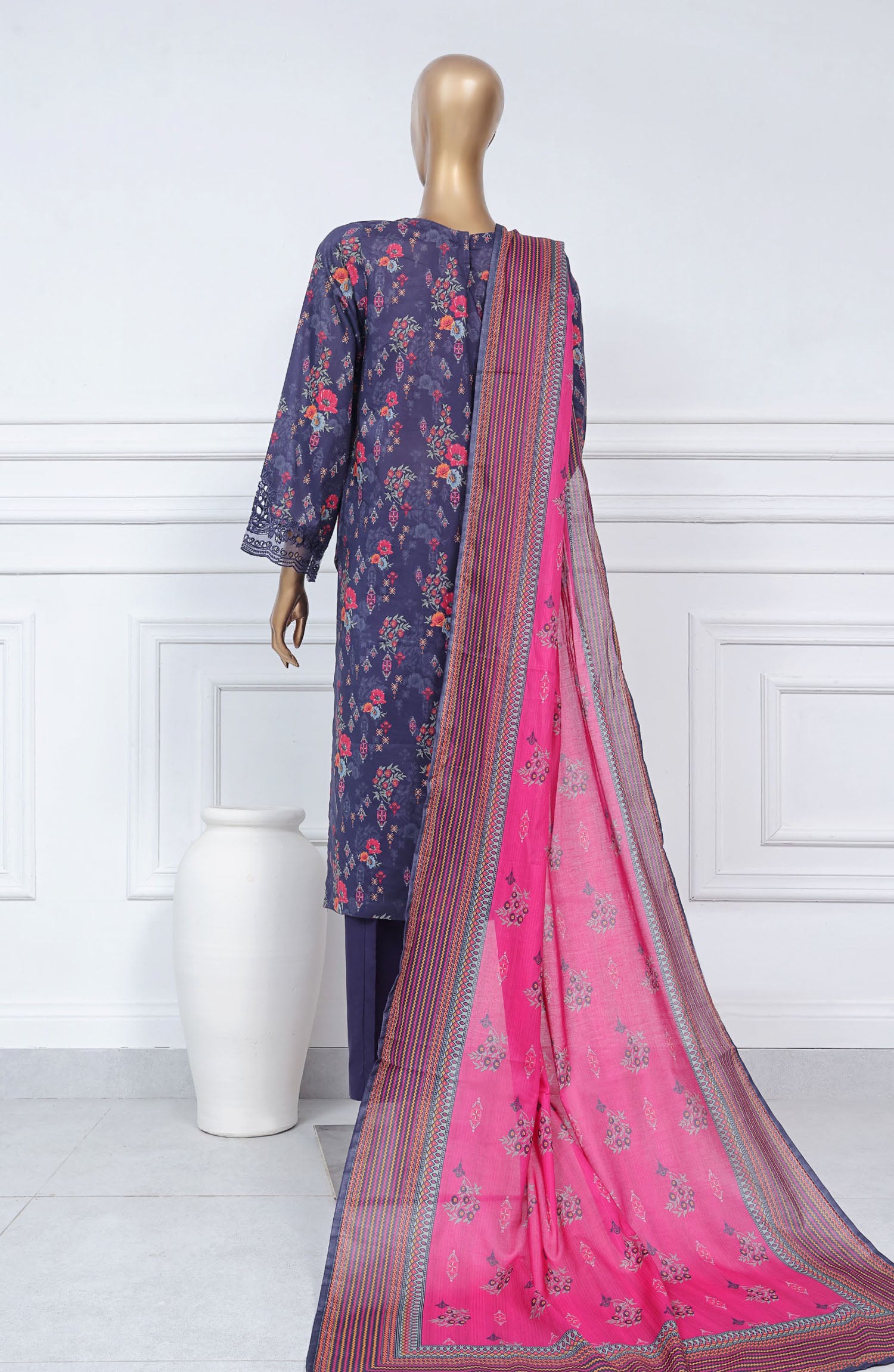 The standard style comes as a long-sleeved kameez with dupatta and trouser/shawlar.
