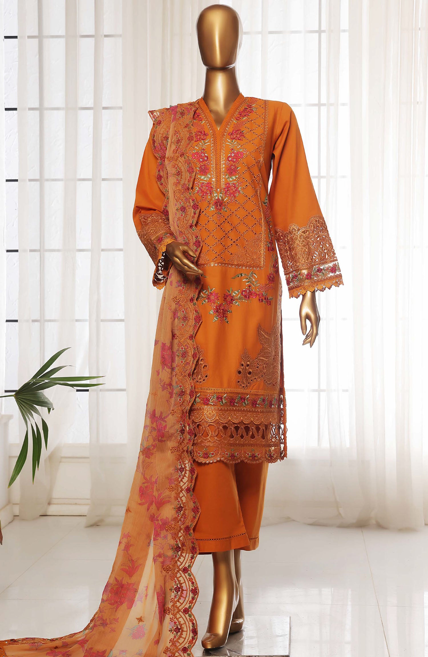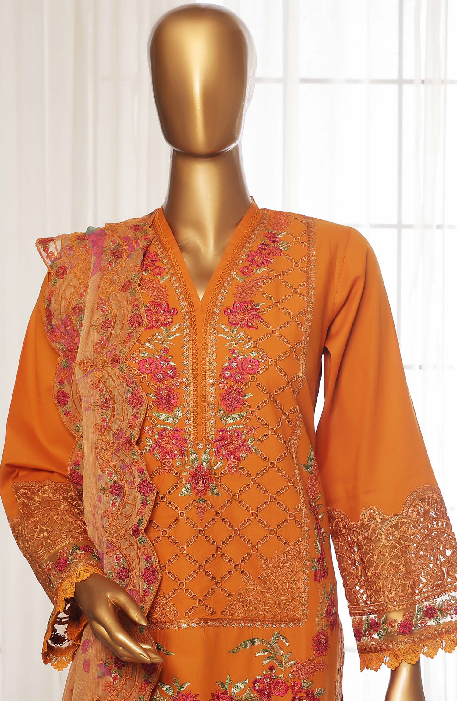 Home Sadabahar Embroidered Lawn Stitched 3 Piece Suit - D-01 - SDB25LES - Orange - Spring Collection