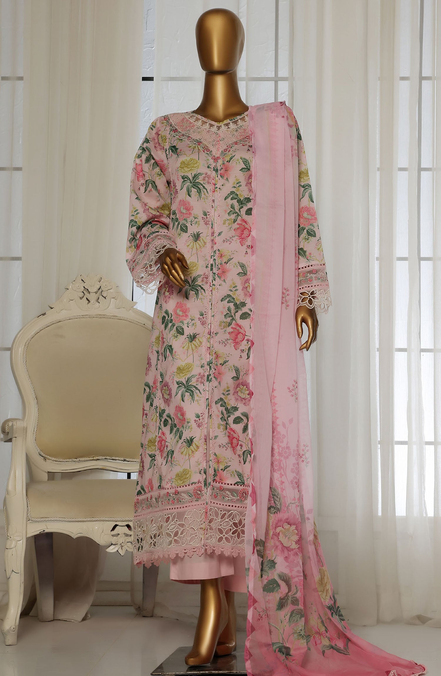 Home Sadabahar Embroidered Lawn Stitched 3 Piece Suit - D-02 - SBD25FCV2 - Pink - Summer Collection