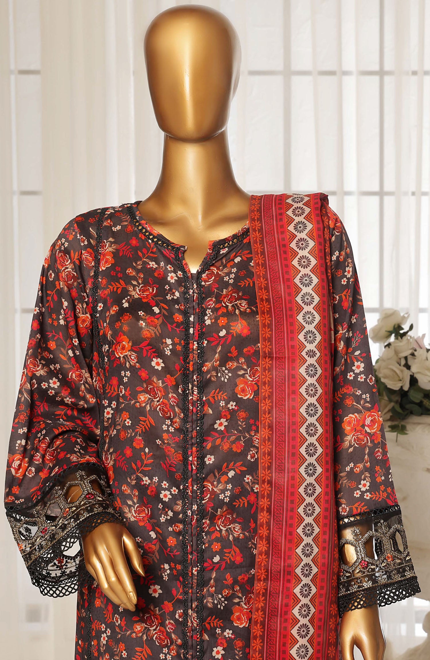 Home Sadabahar Embroidered Lawn Stitched 3 Piece Suit - D-03 - SBD25FC - Red - Summer Collection