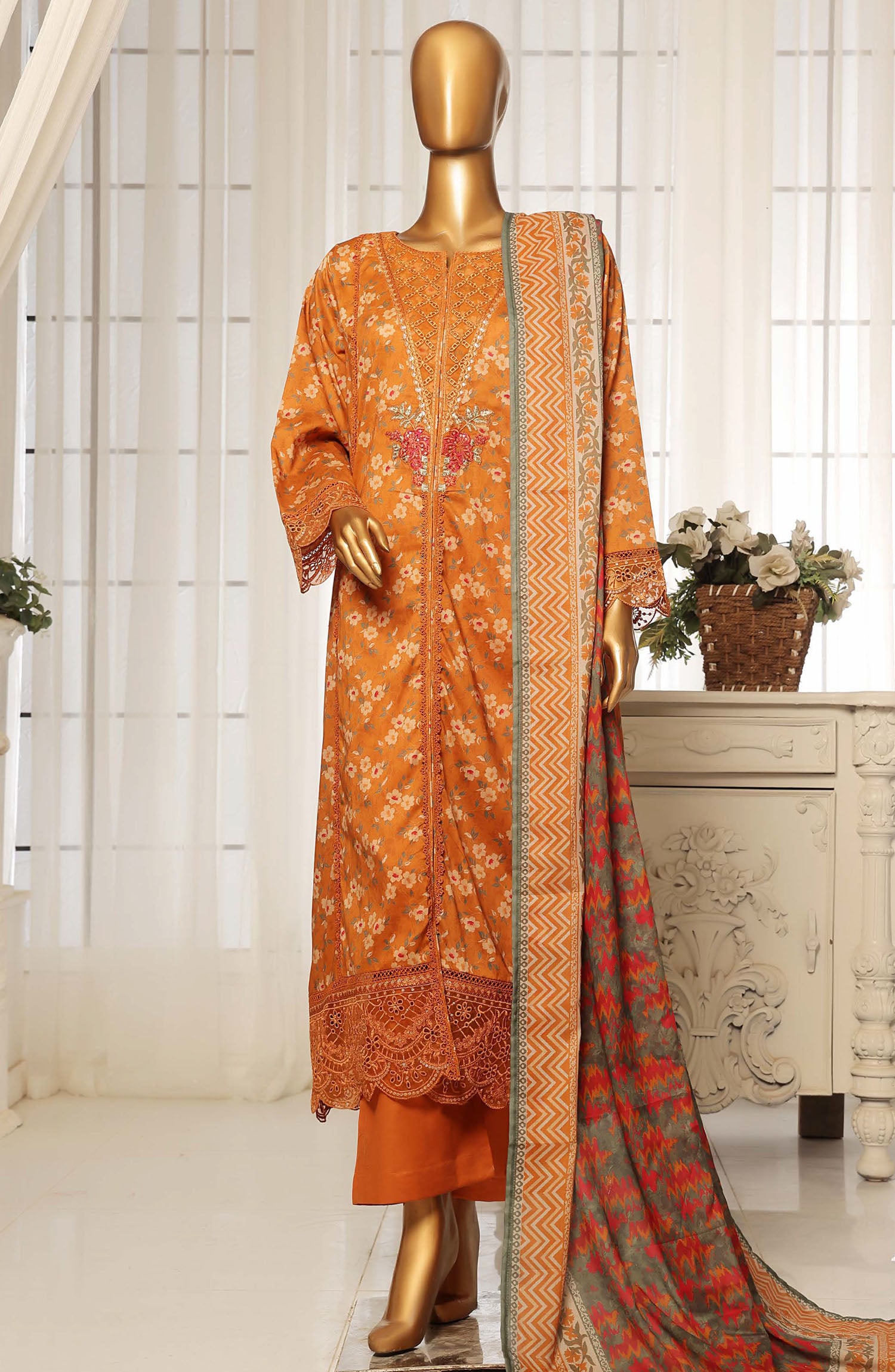 Home Sadabahar Embroidered Lawn Stitched 3 Piece Suit - D-06 - SBD25FC - Orange - Summer Collection