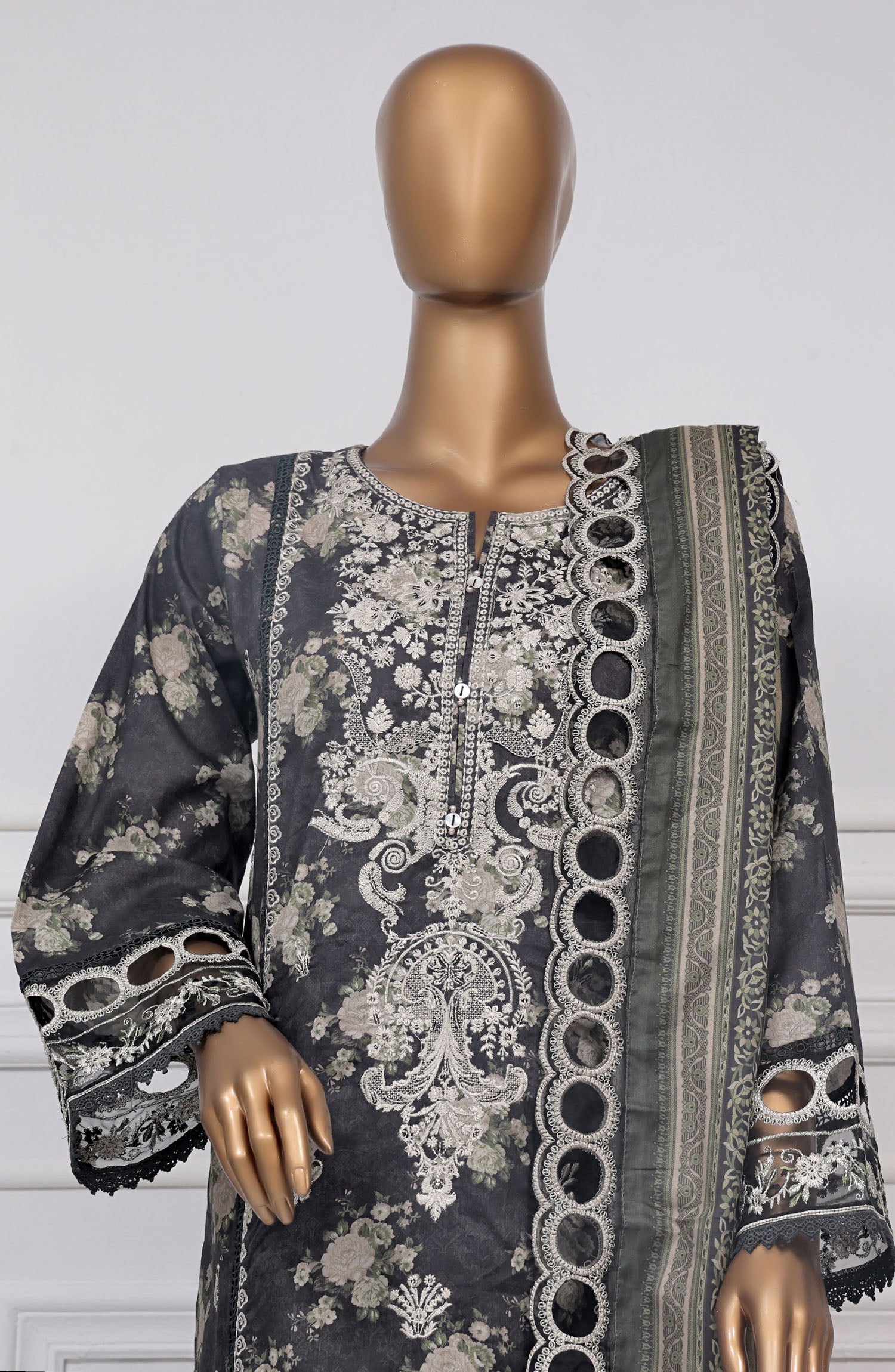 Home Sadabahar Embroidered Lawn Stitched 3 Piece Suit - D-08 - SB2525SEL - Black - Summer Collection