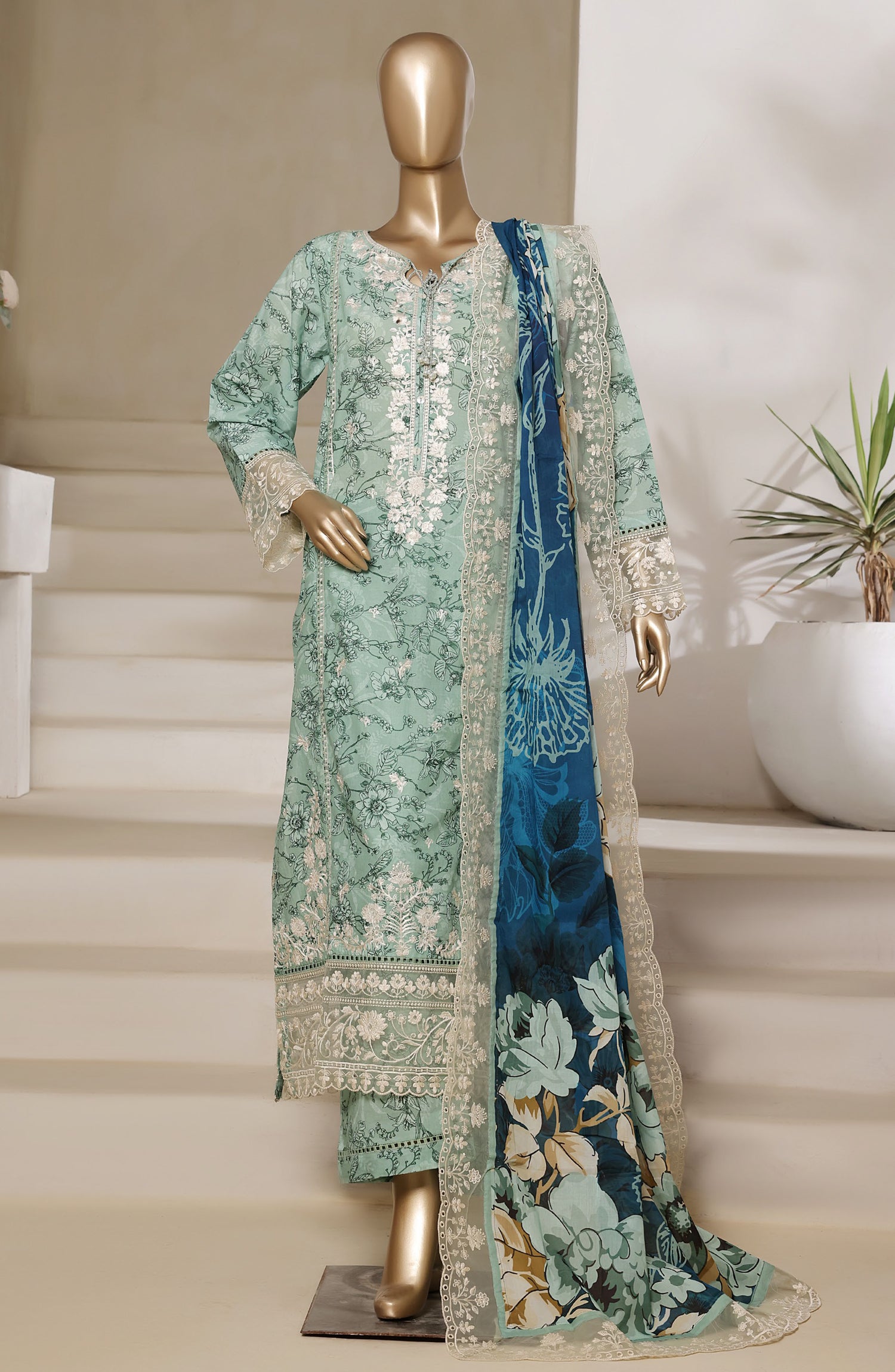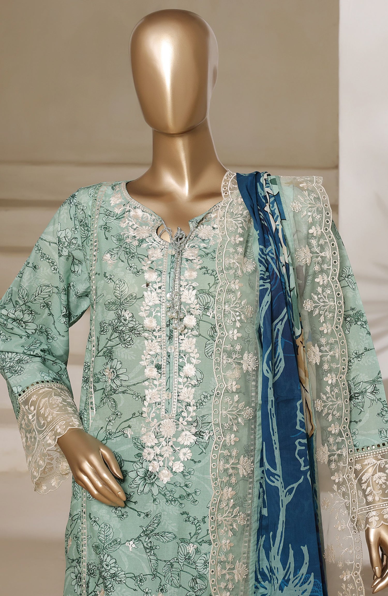 Digital Printed and Embroidered Cotton Stitched Lawn Shirt