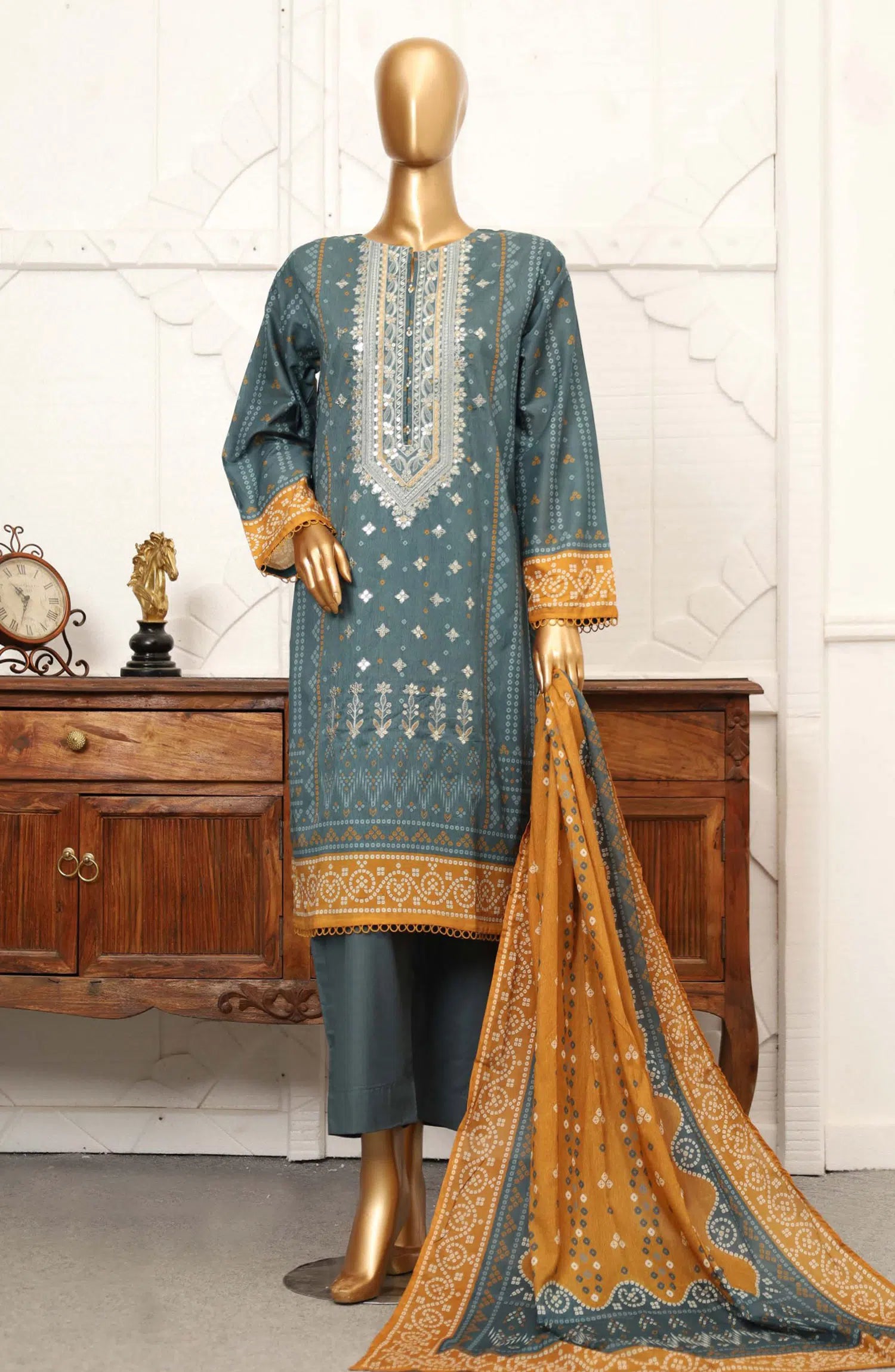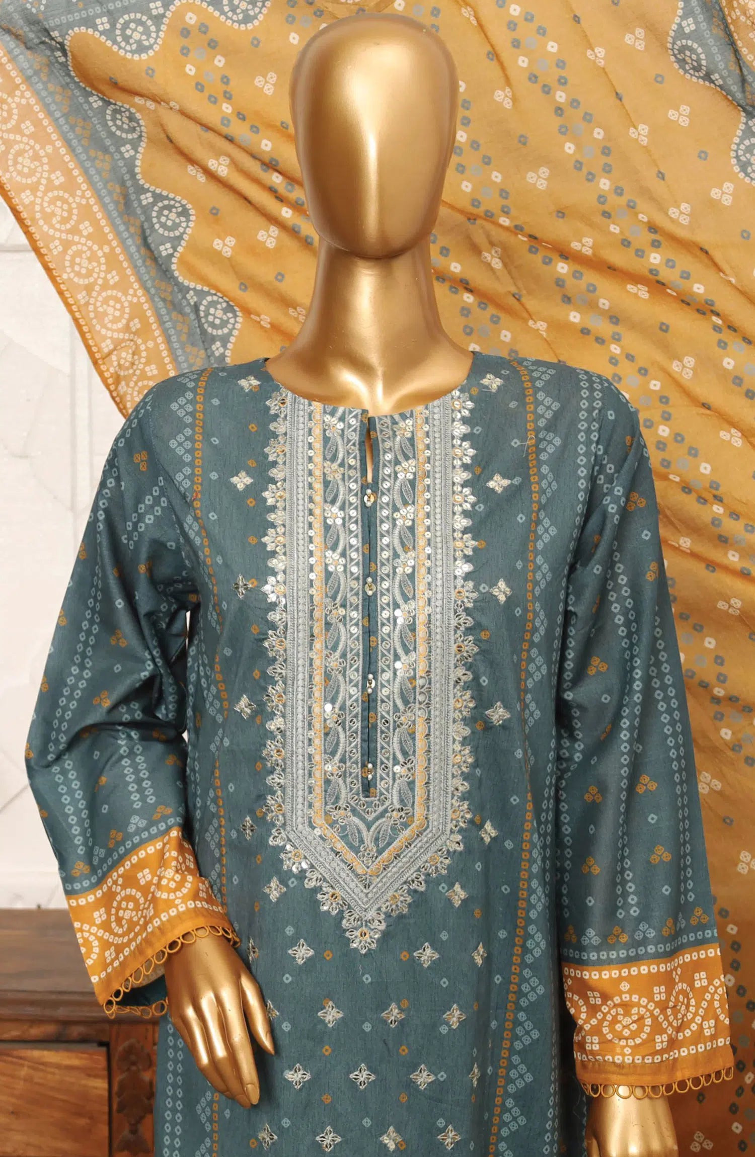 3 piece printed and Embroidered lawn suit.