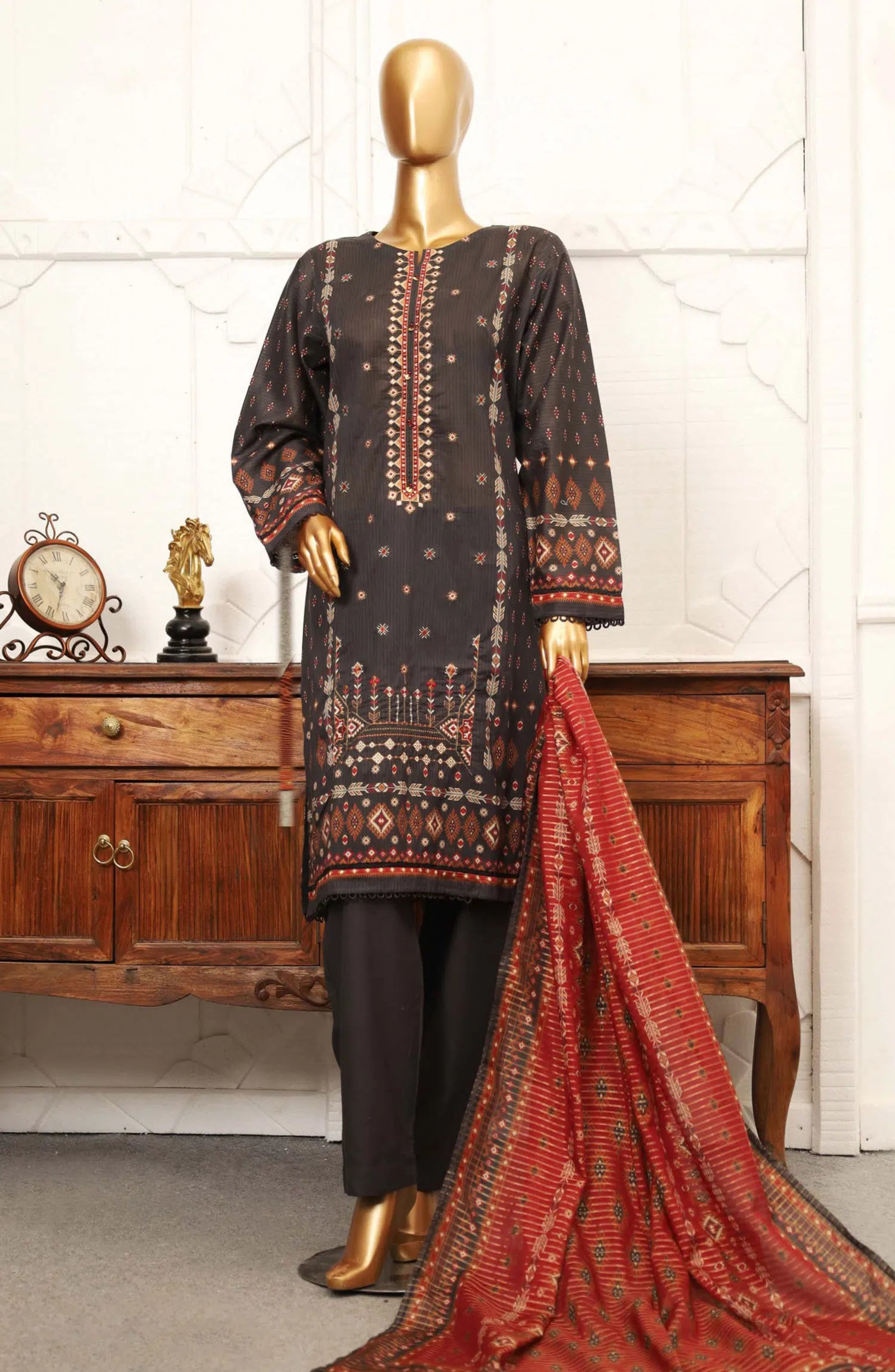 Sadabahar Premium Embroidered Cross Texture Stitched 3 Piece Suit - Design-07 - SBD25FEST - Black - Winter Collection