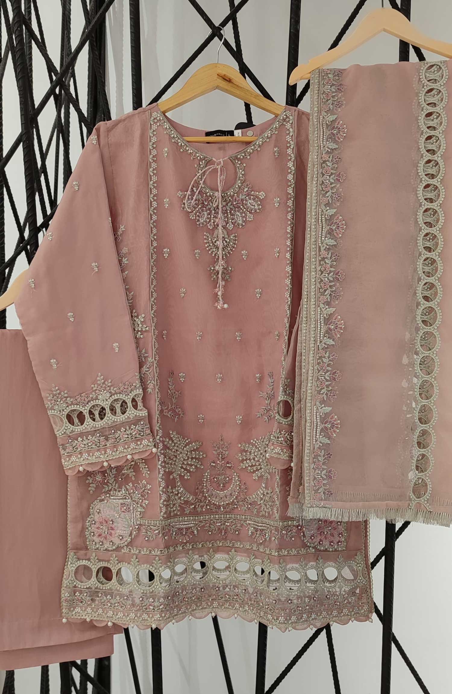 Home Sadabahar Embroidered Organza Stitched 3 Piece Suit - B22 D - SD25EOF - Light Pink - Festive Collection