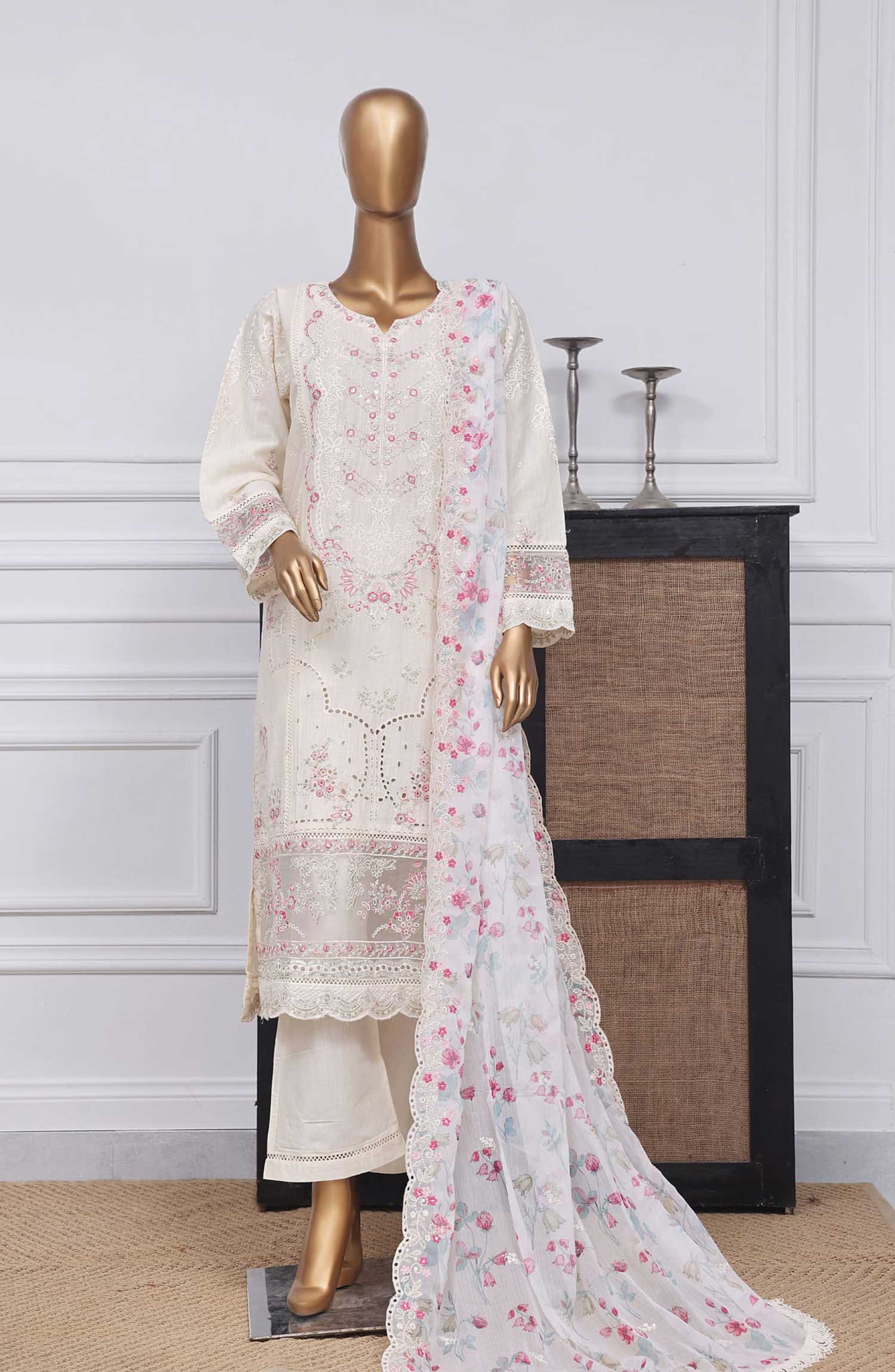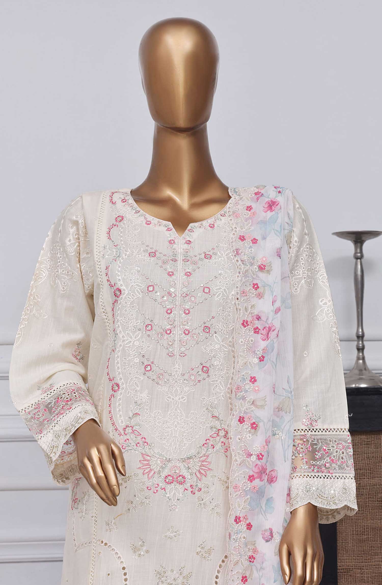 Sadabahar Embroidered Rod cotton Stitched 3 Piece - D-03 - SDB25LP - White - Festive Collection