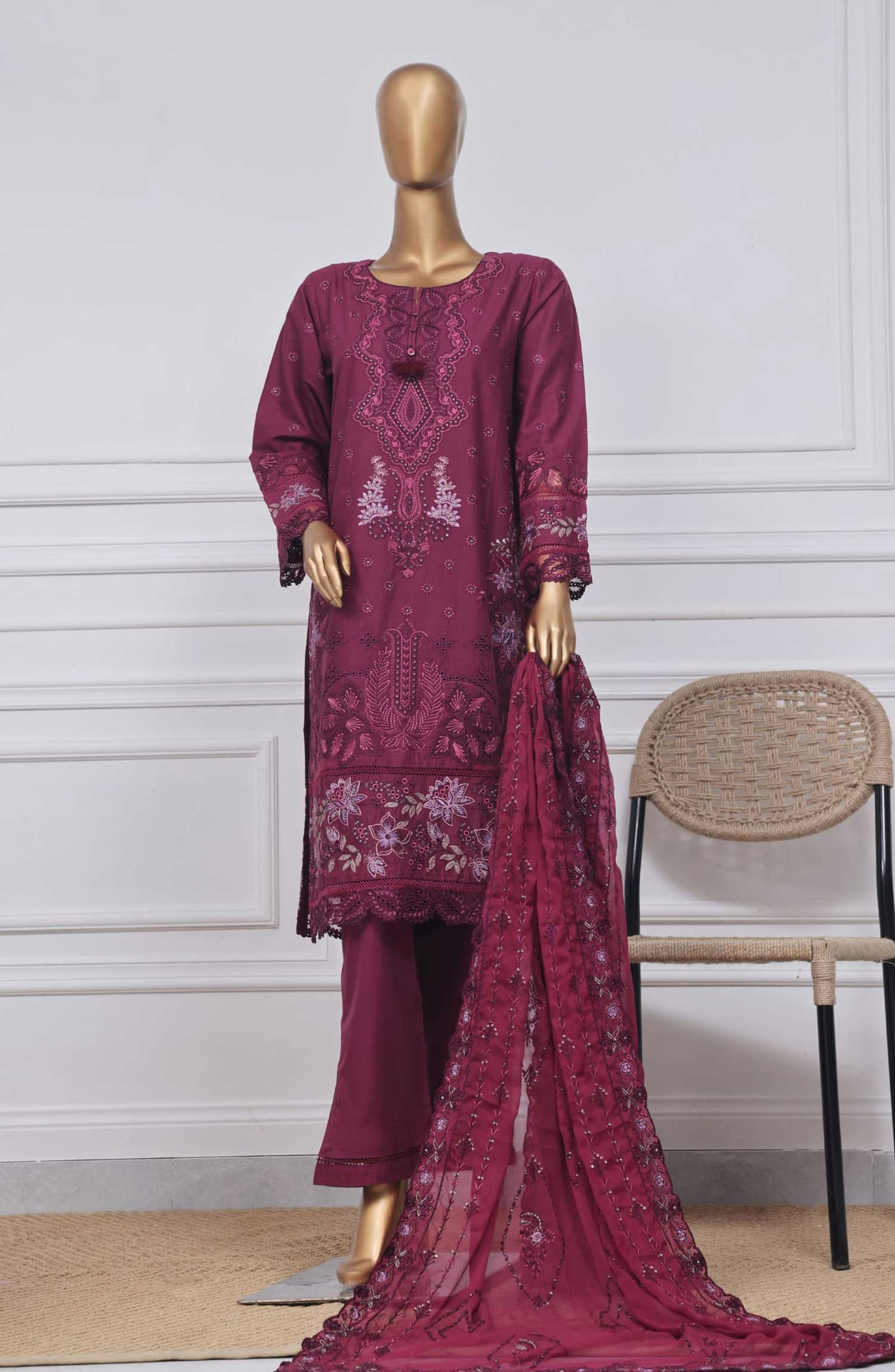 Exclusive Embroidered 3 piece Rod Cotton Stitched Suit