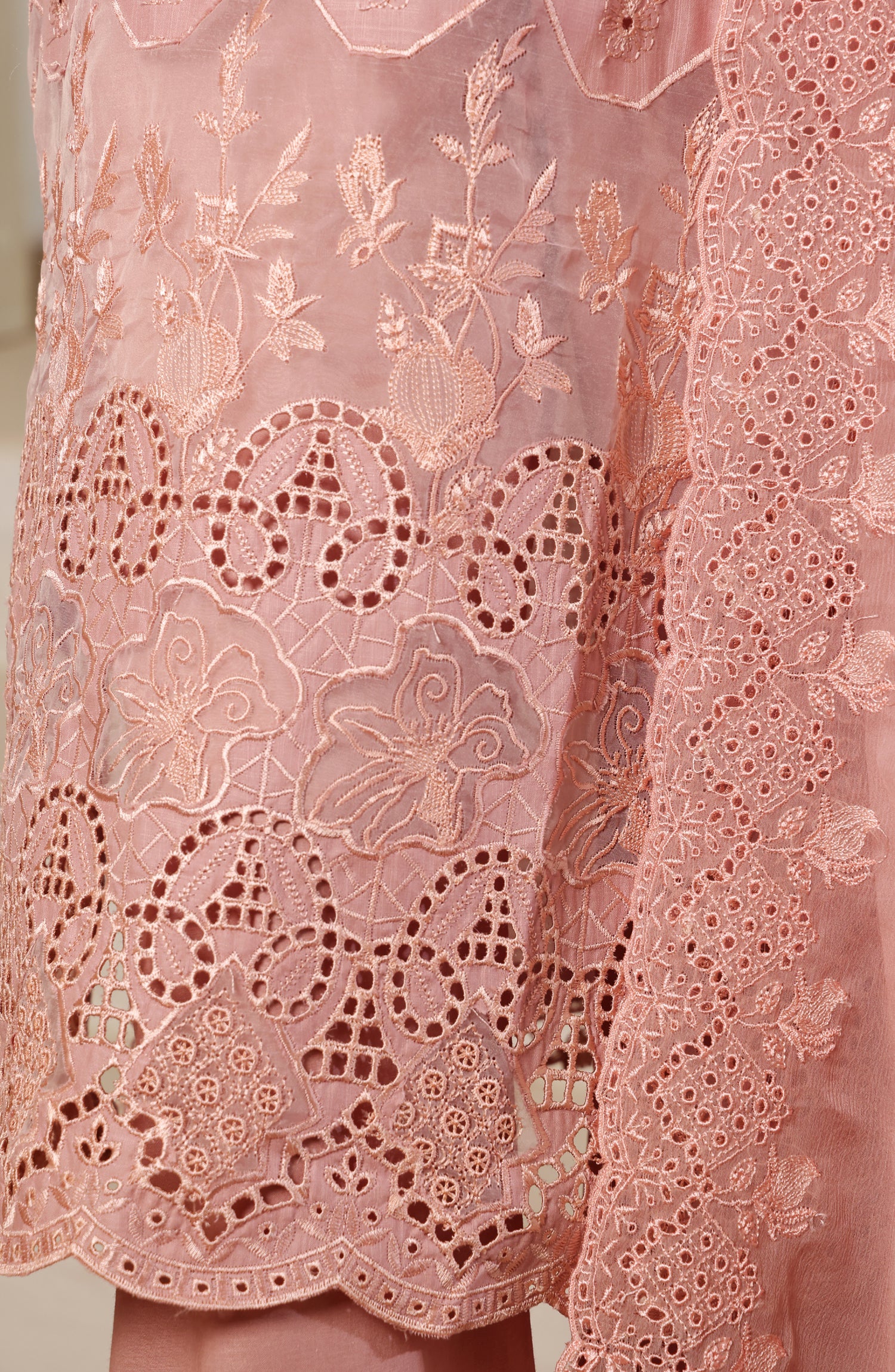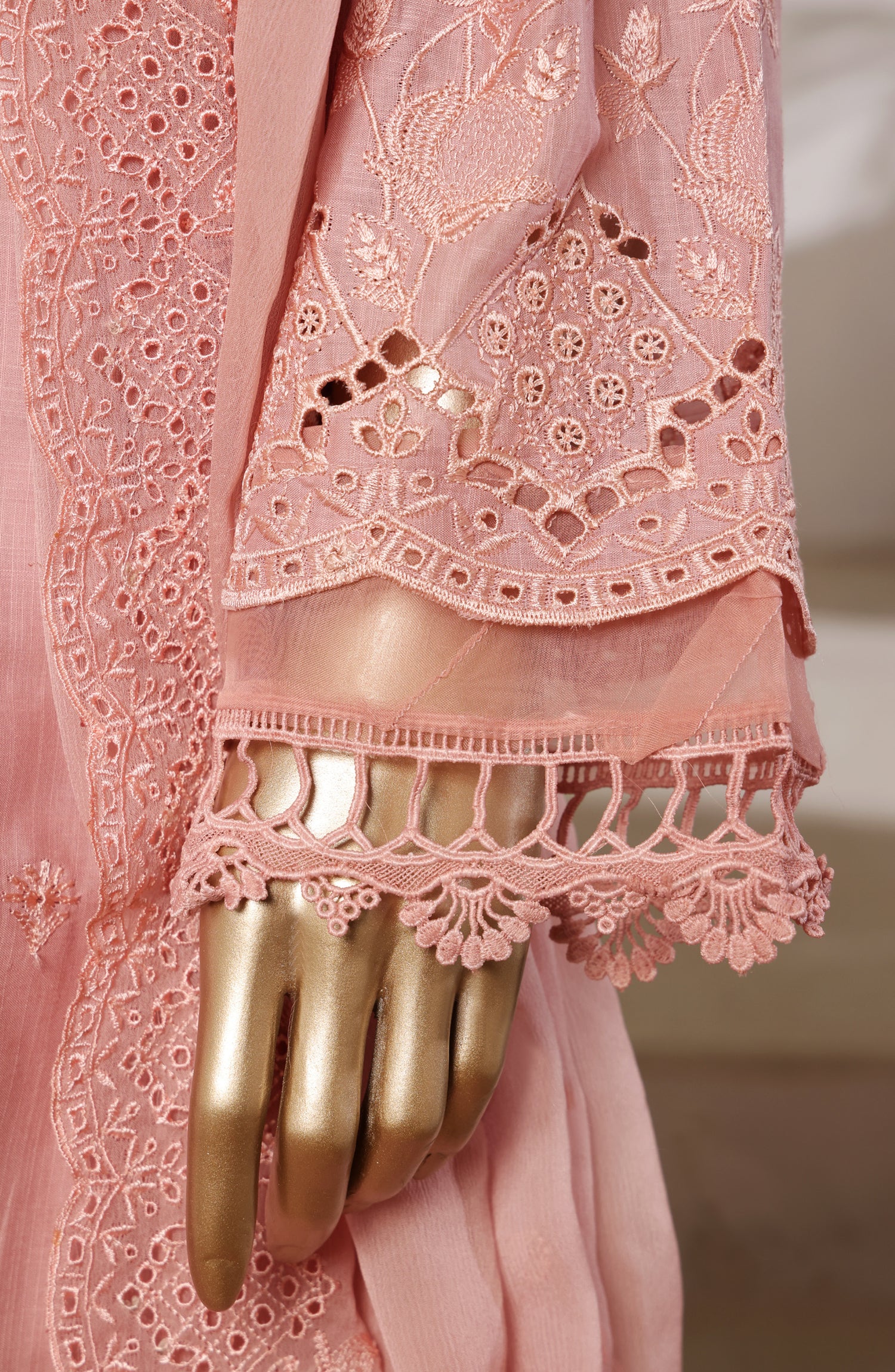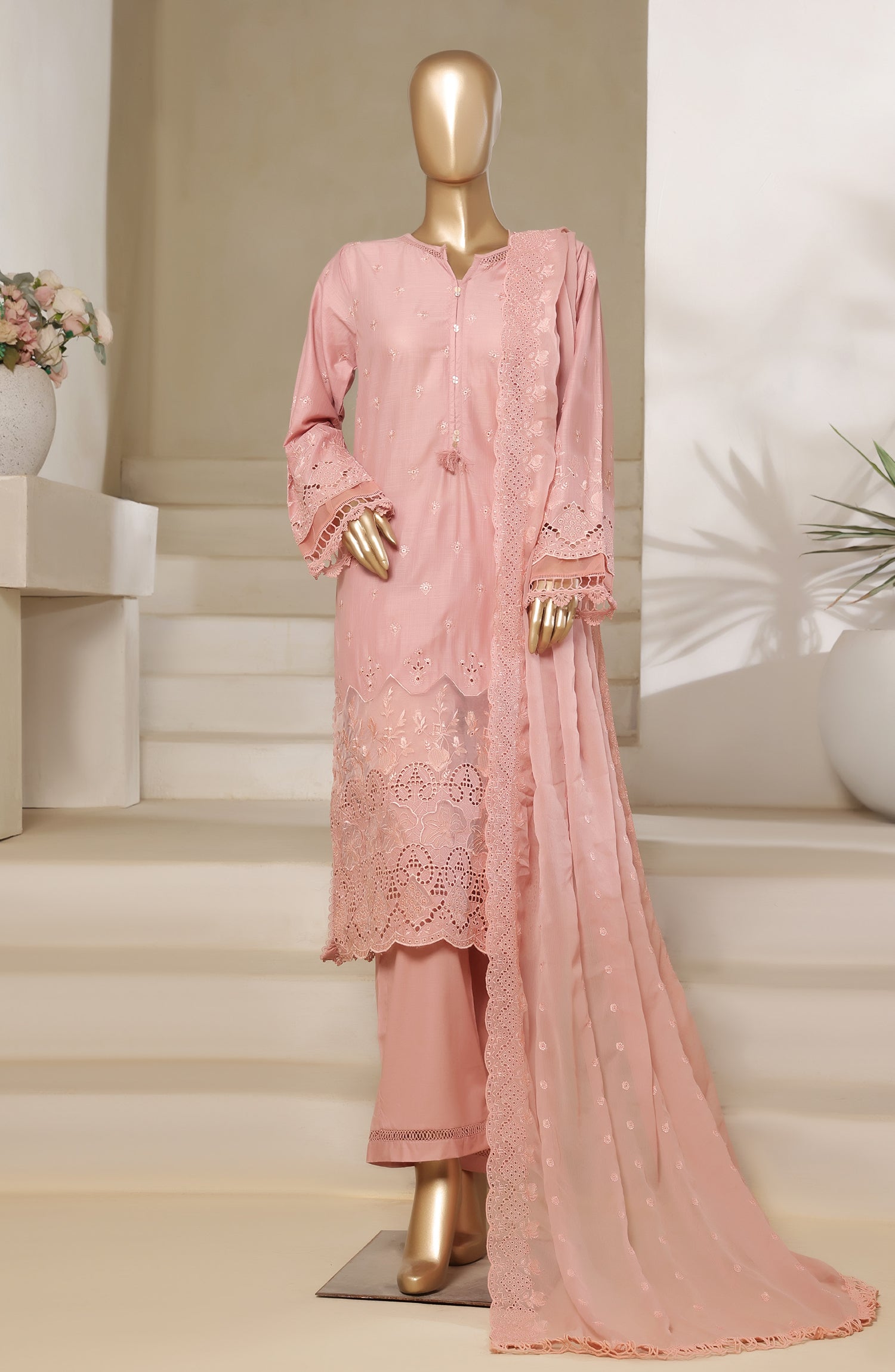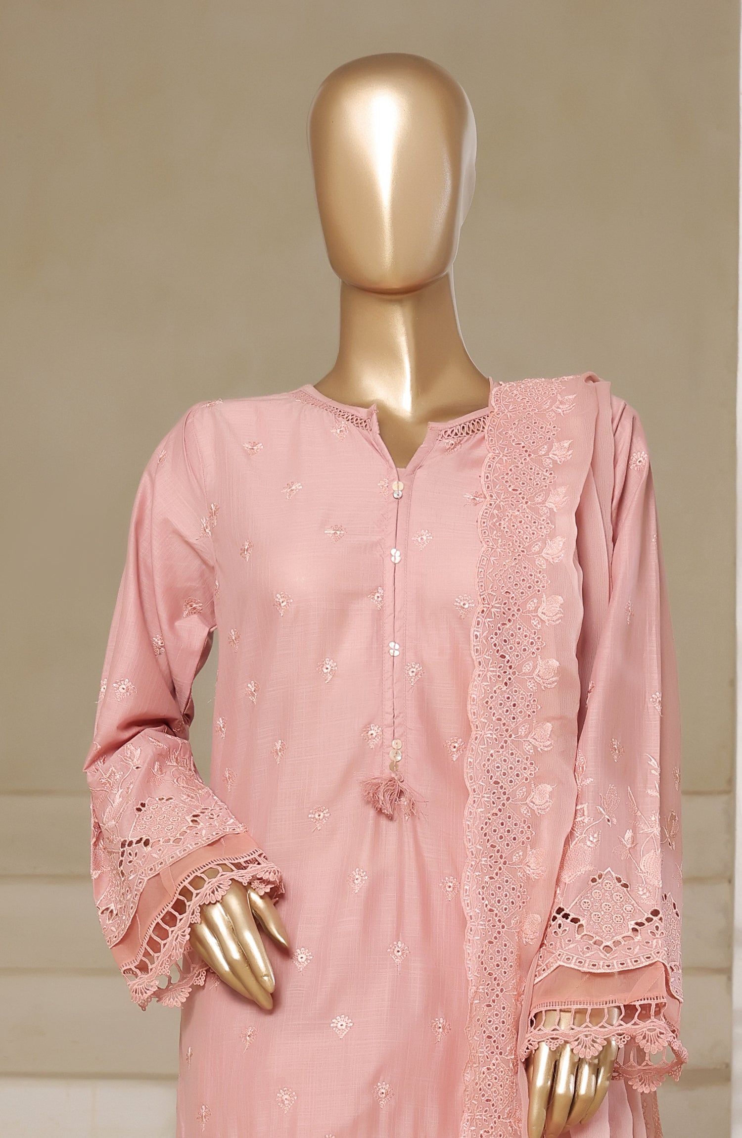 Luxury Embroidered Slub Chikankari Cambric Stitched 3 Piece Suit