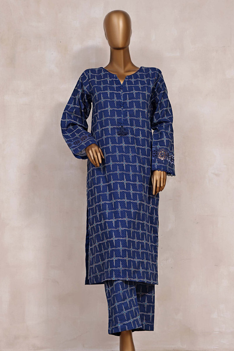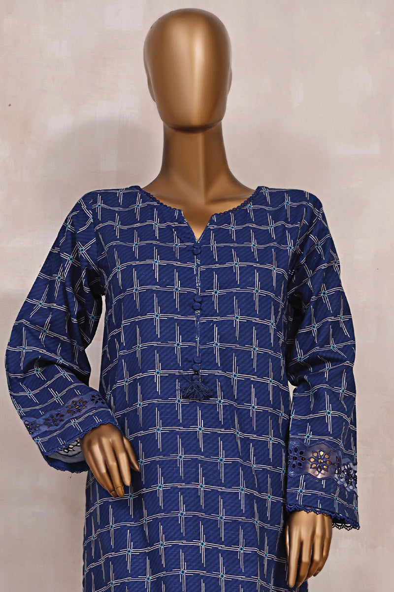 Printed and cutwork embroidered khaddar stitched shirt with matching stitched trouser