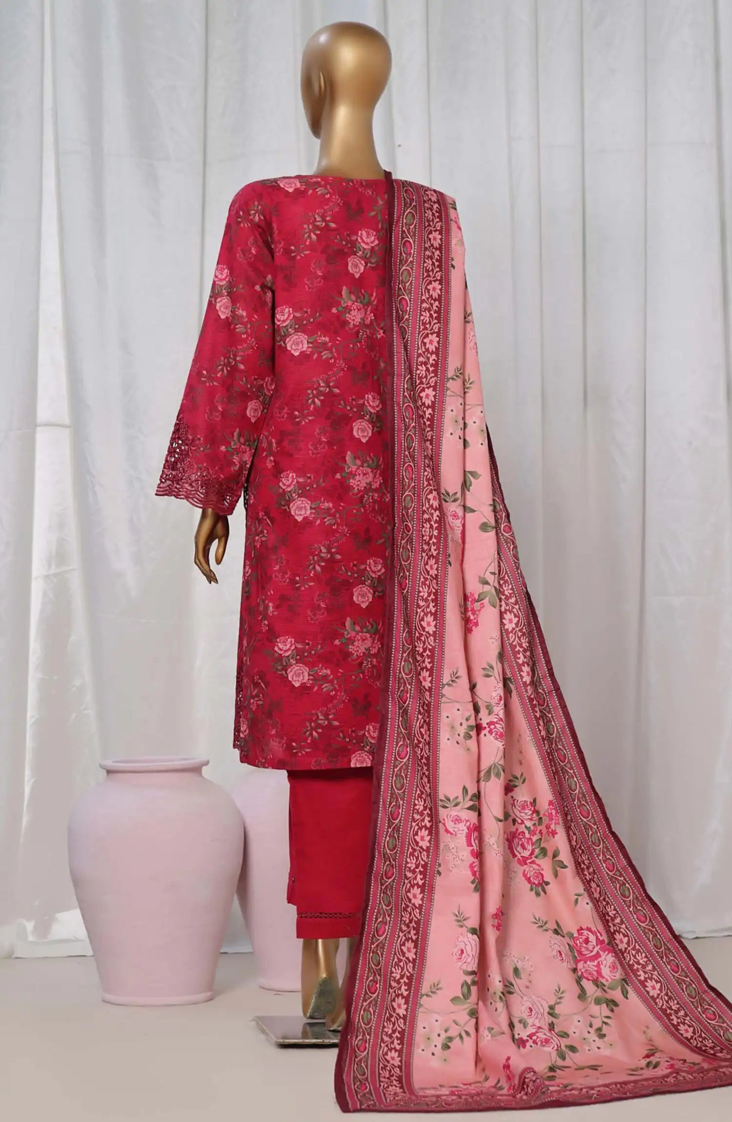 Modest Embroidered Khaddar Stitched 3 Piece Suit - 10040-Pnk - MOD25WNT - Pink - Winter Collection