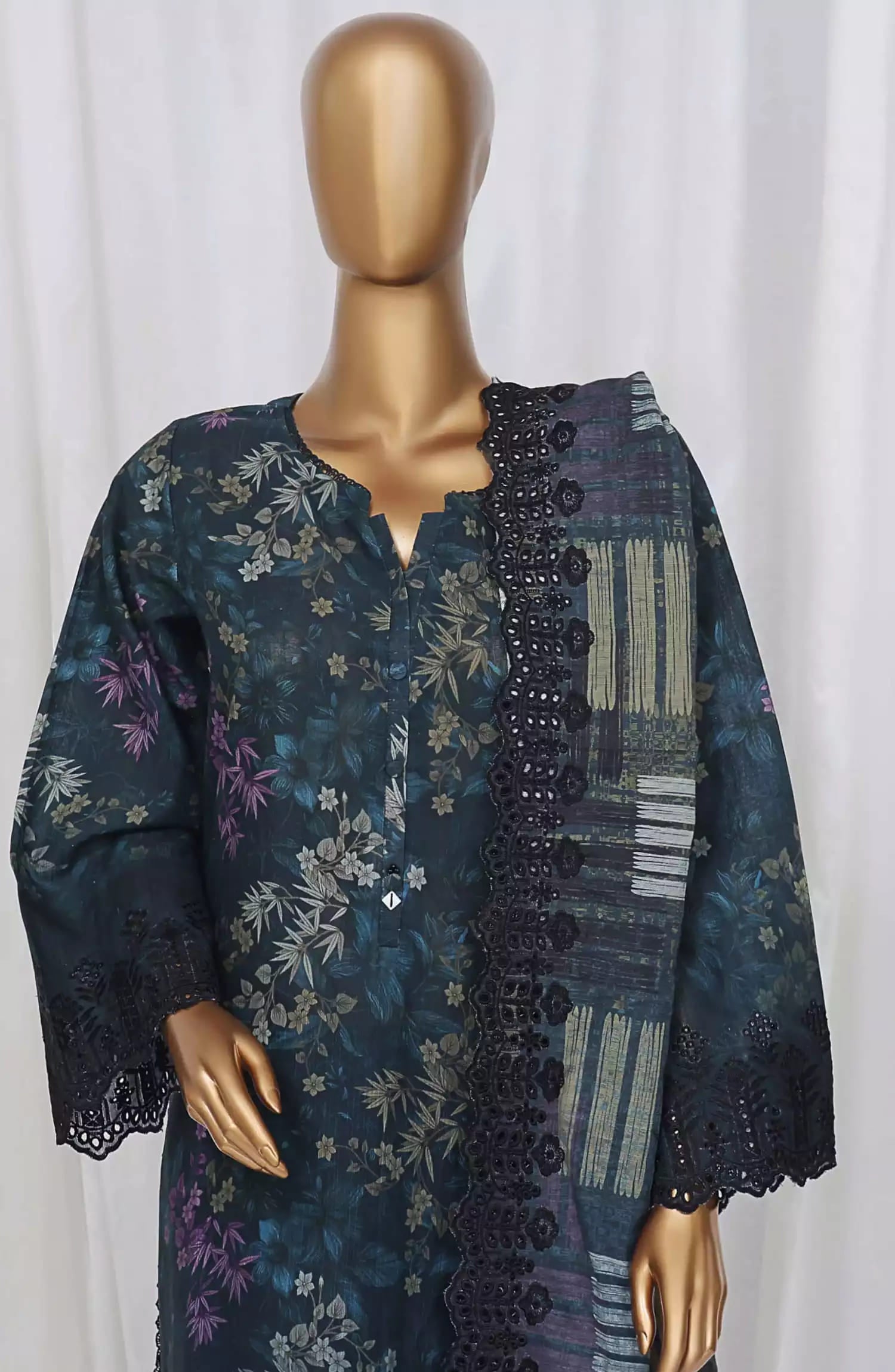 Modest Embroidered Khaddar Stitched 3 Piece Suit - 9990-Blk - MOD25WNT - Black - Winter Collection