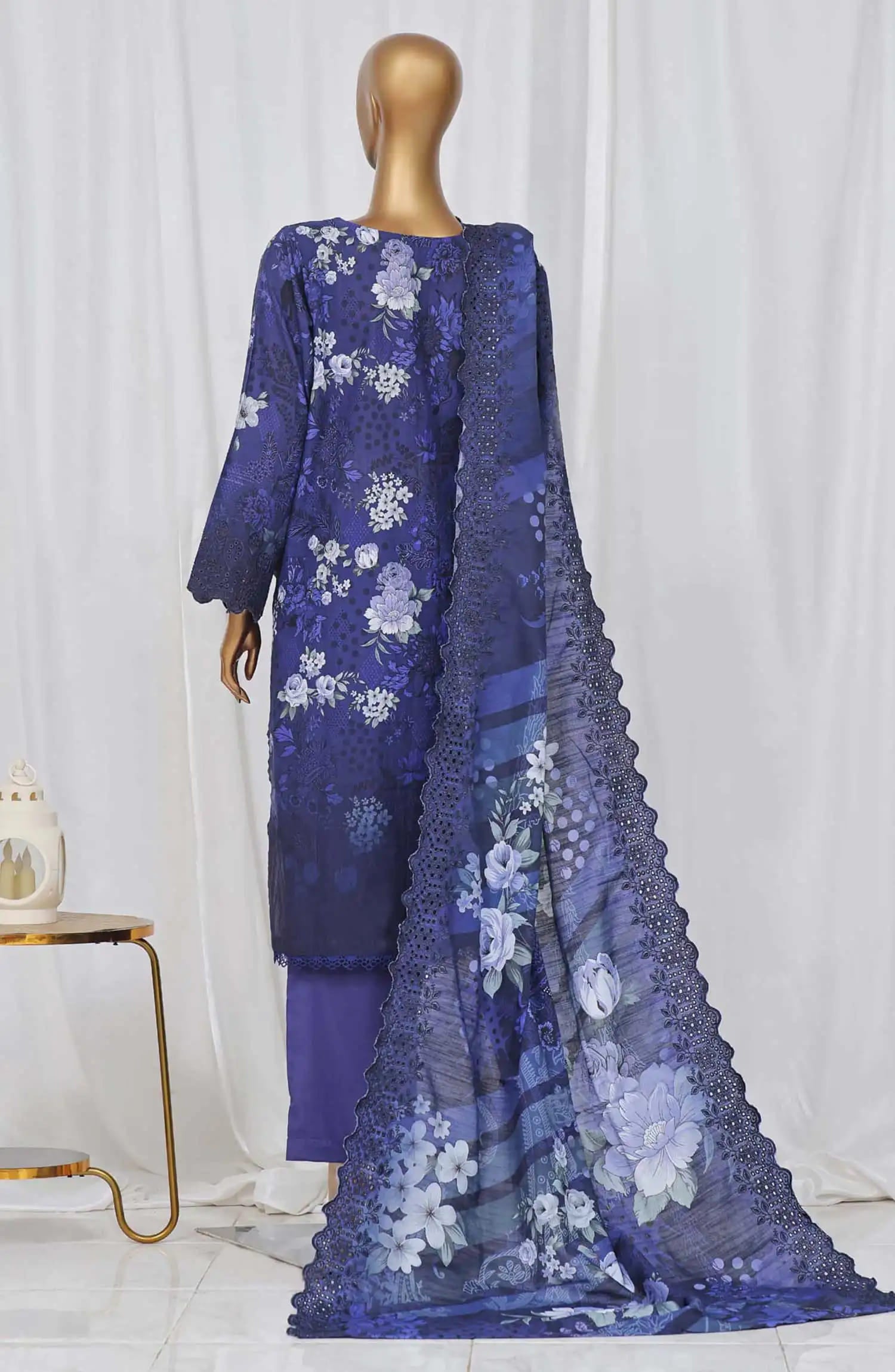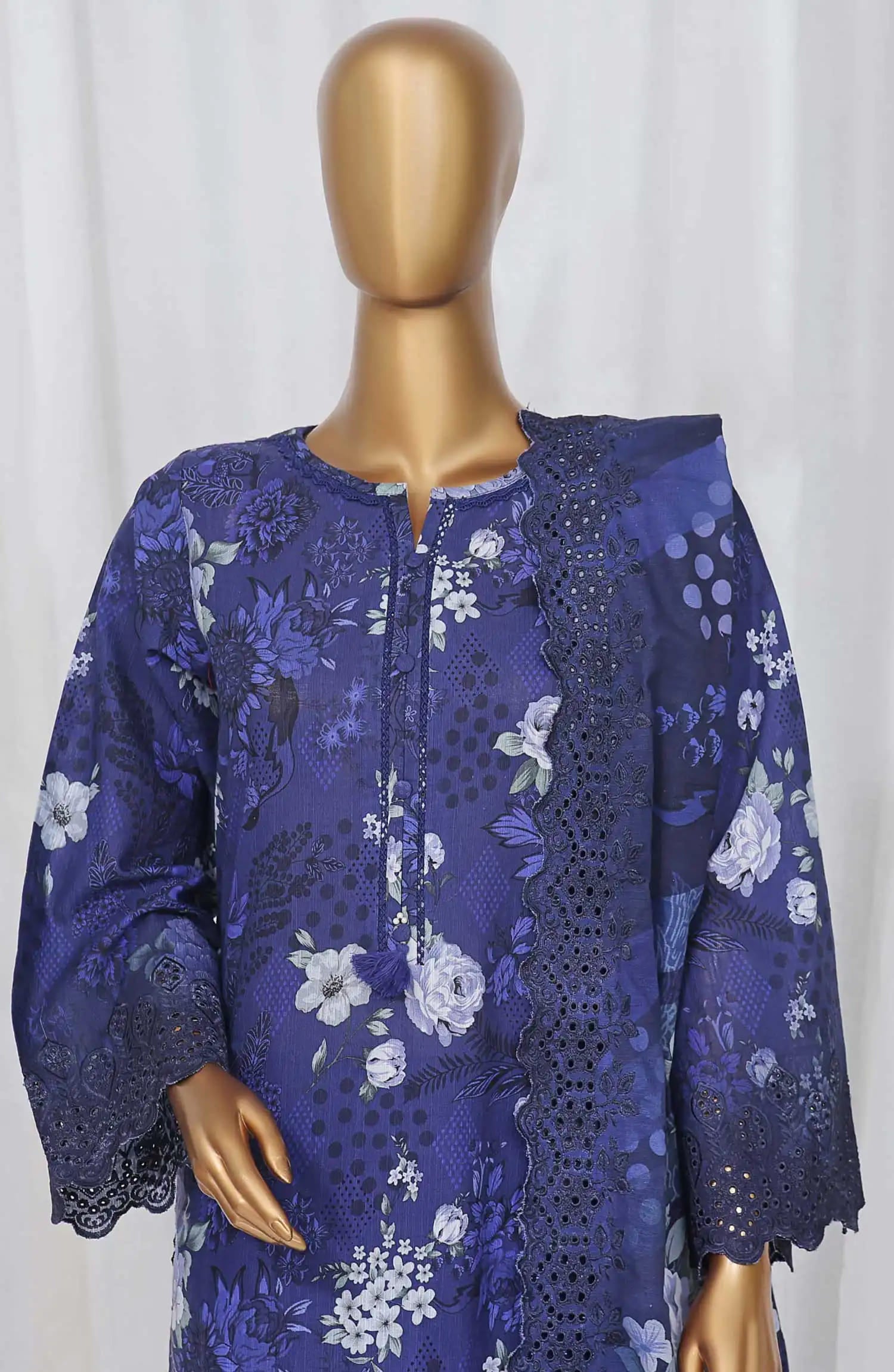 Modest Embroidered Chiffon Stitched 3 Piece Suit - 9825-Blu - MOD25PRF - Blue - Festive Girls Collection