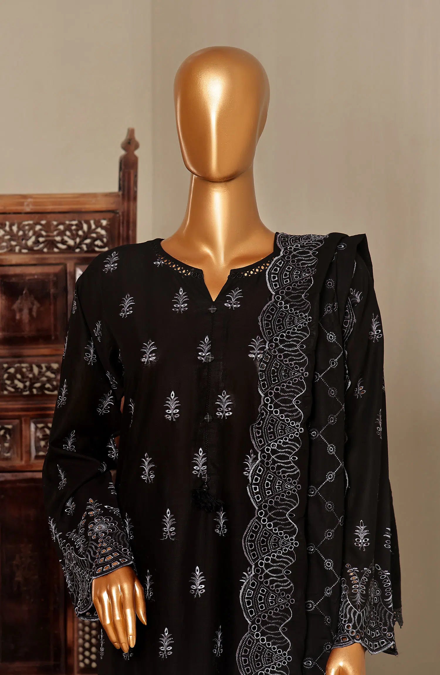 3 piece stitched Chikankari embroidered lawn with embroidered dupatta.