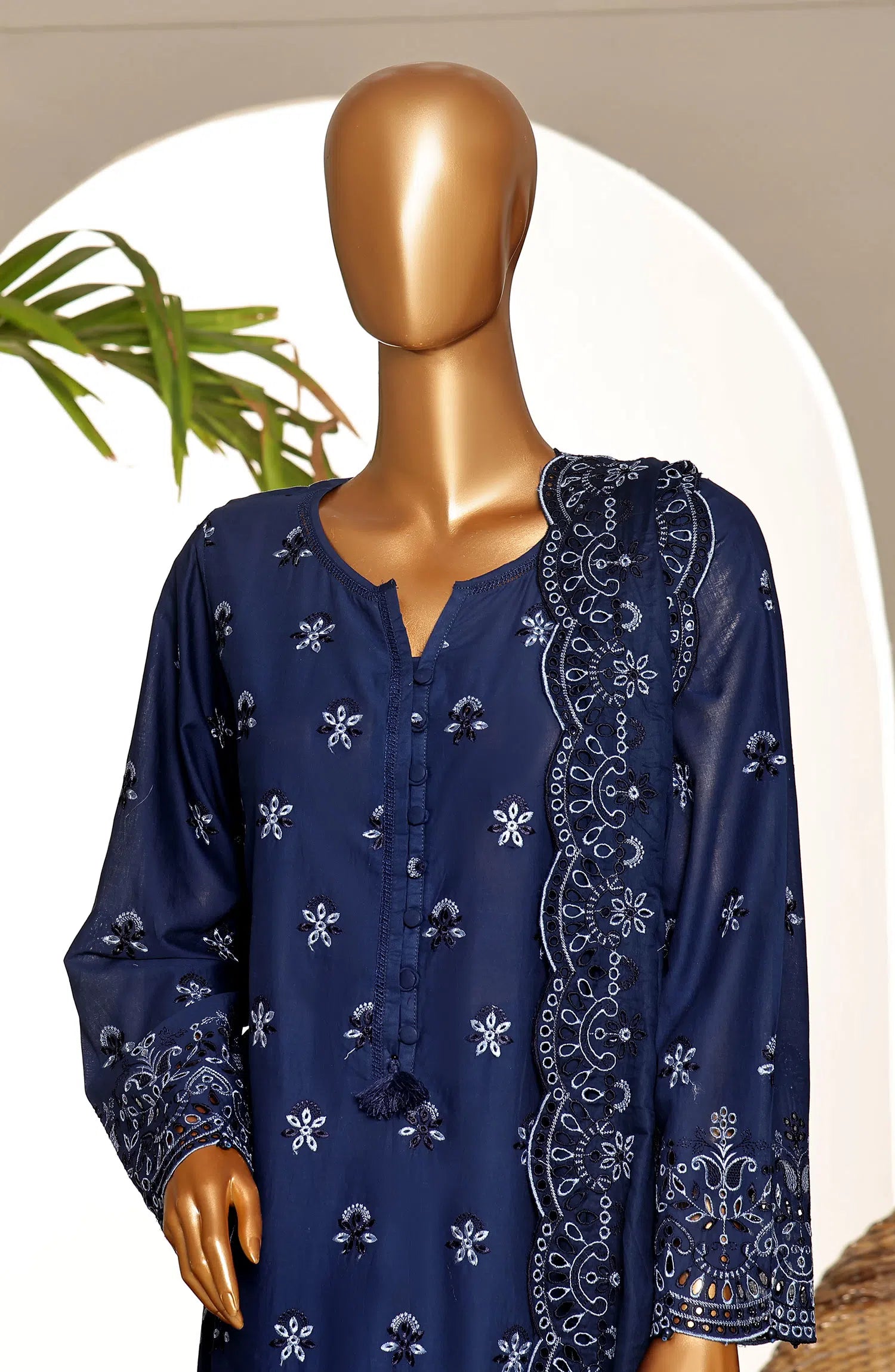 Modest Embroidered Chiffon Stitched 3 Piece Suit - 9825-Blu - MOD25PRF - Blue - Festive Girls Collection