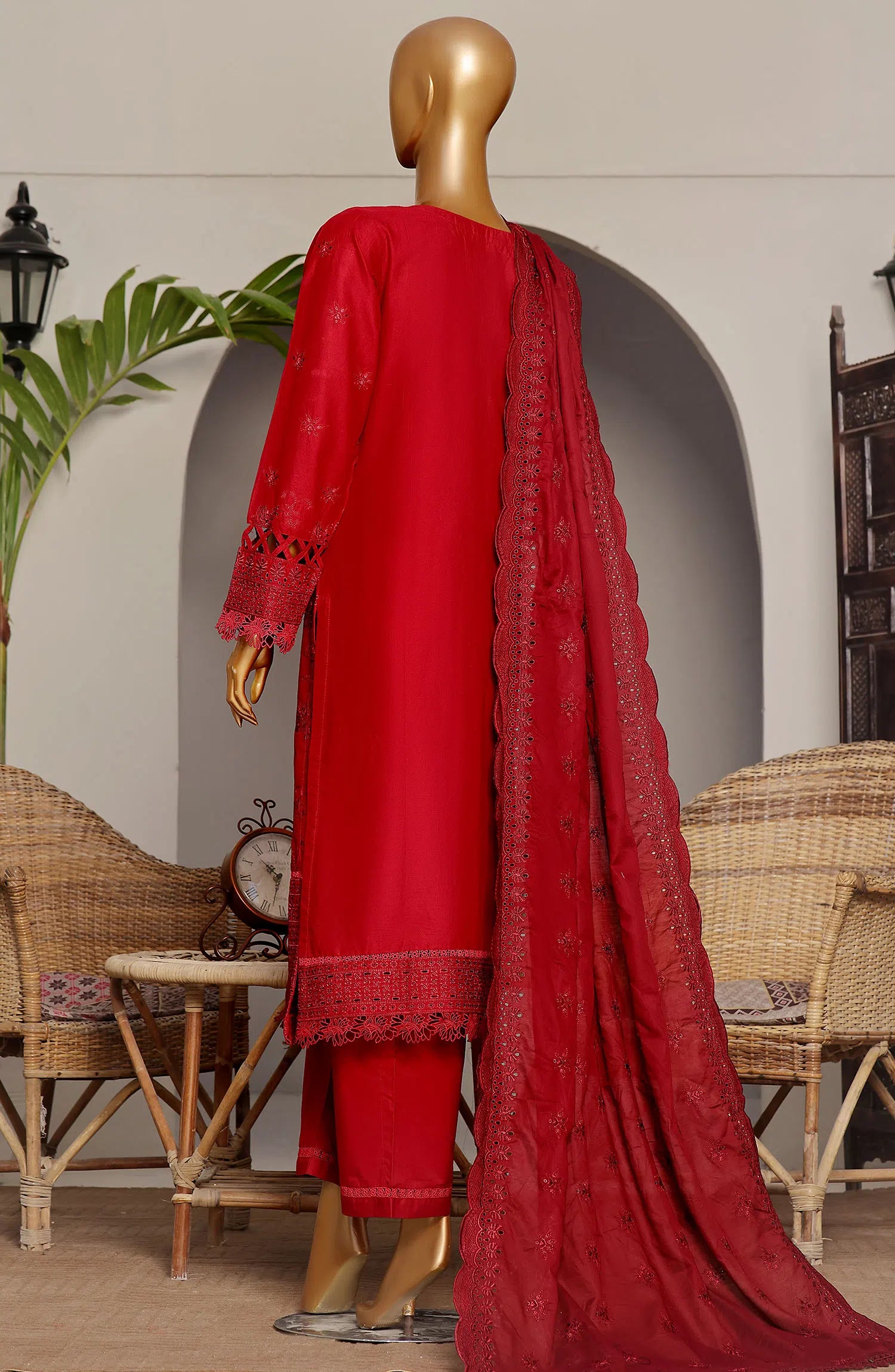 Modest Embroidered Raw Silk Stitched 3 Piece Suit - 9975-Pnk - MOD25PRF - Pink - Festive Girls Collection