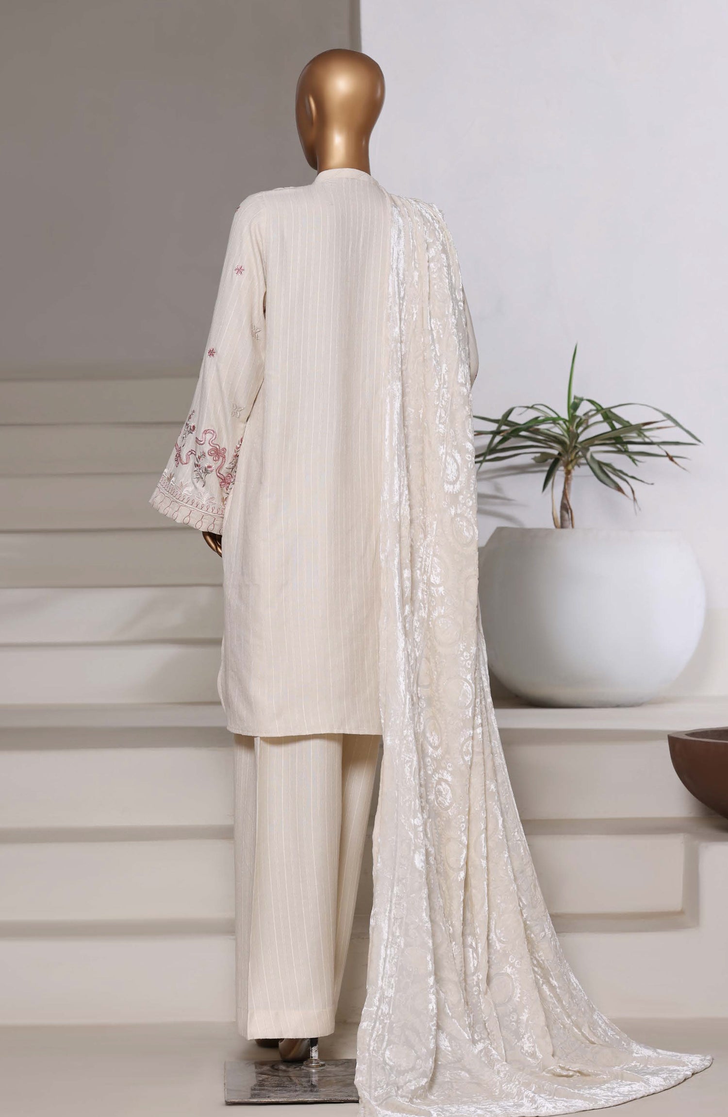 Luxury Embroidered Dhanak Stitched 3 Piece Suit with Palachi Shawl
