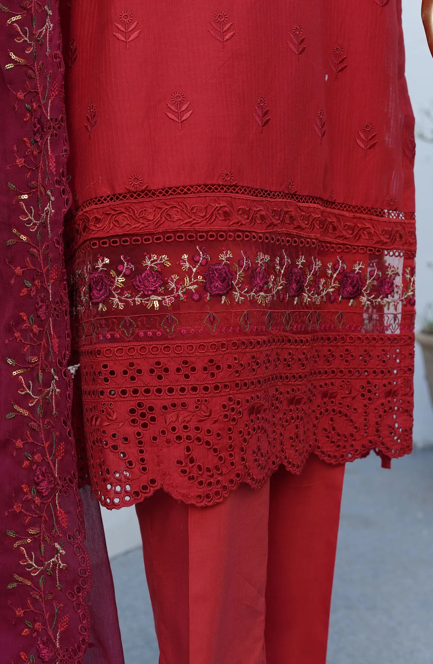 Rua by Casual Lite Embroidered Premium Linen Stitched 3 Piece Suit - D-02 Crimson Folklore - CL25RU - Red - Winter Collection