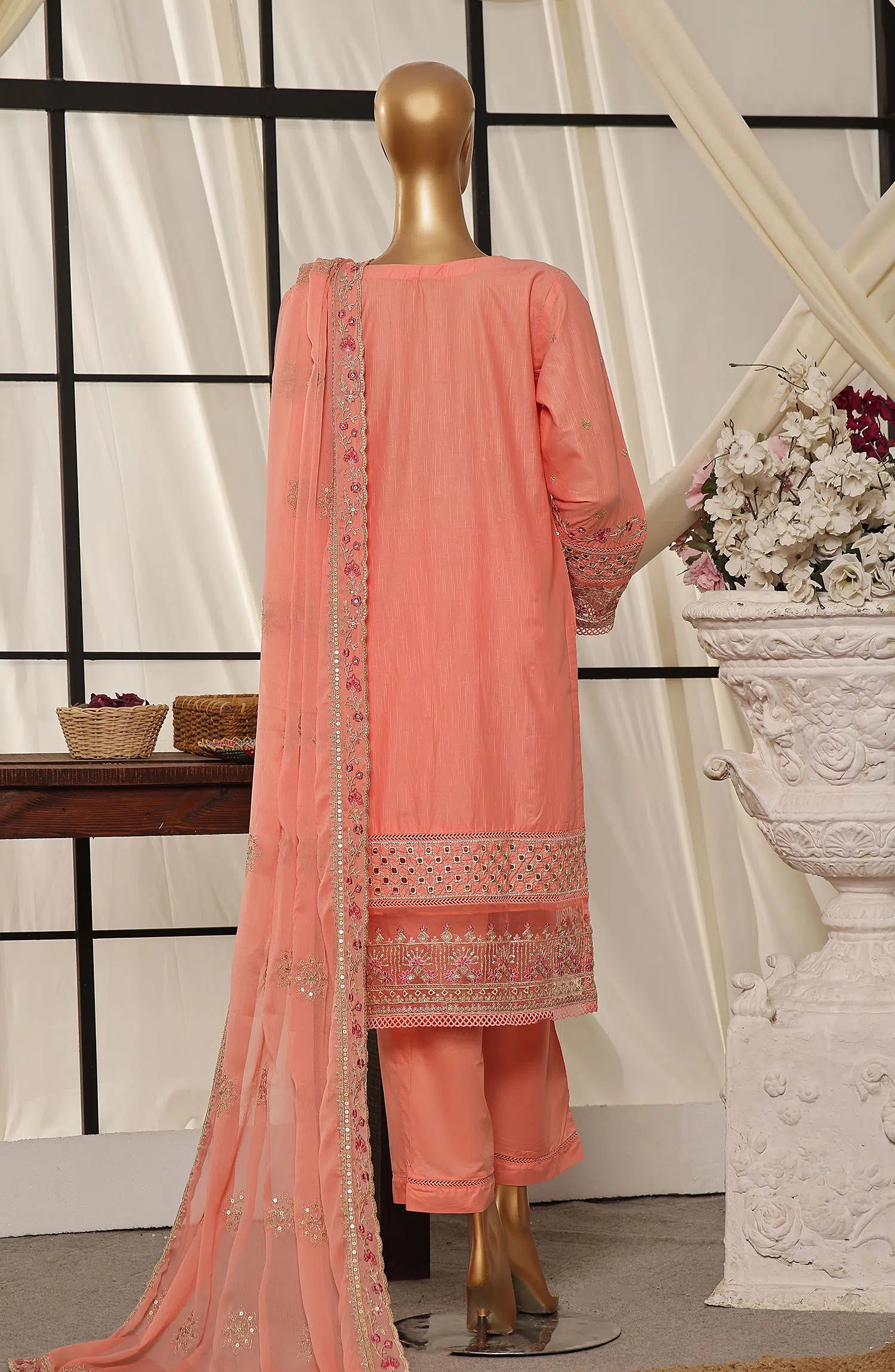 SADABAHAR Luxury Embroidered Festive Collection With Chiffon Embroidered Dupatta Vol 3 has been styled in the image for photography and illustrative purposes.