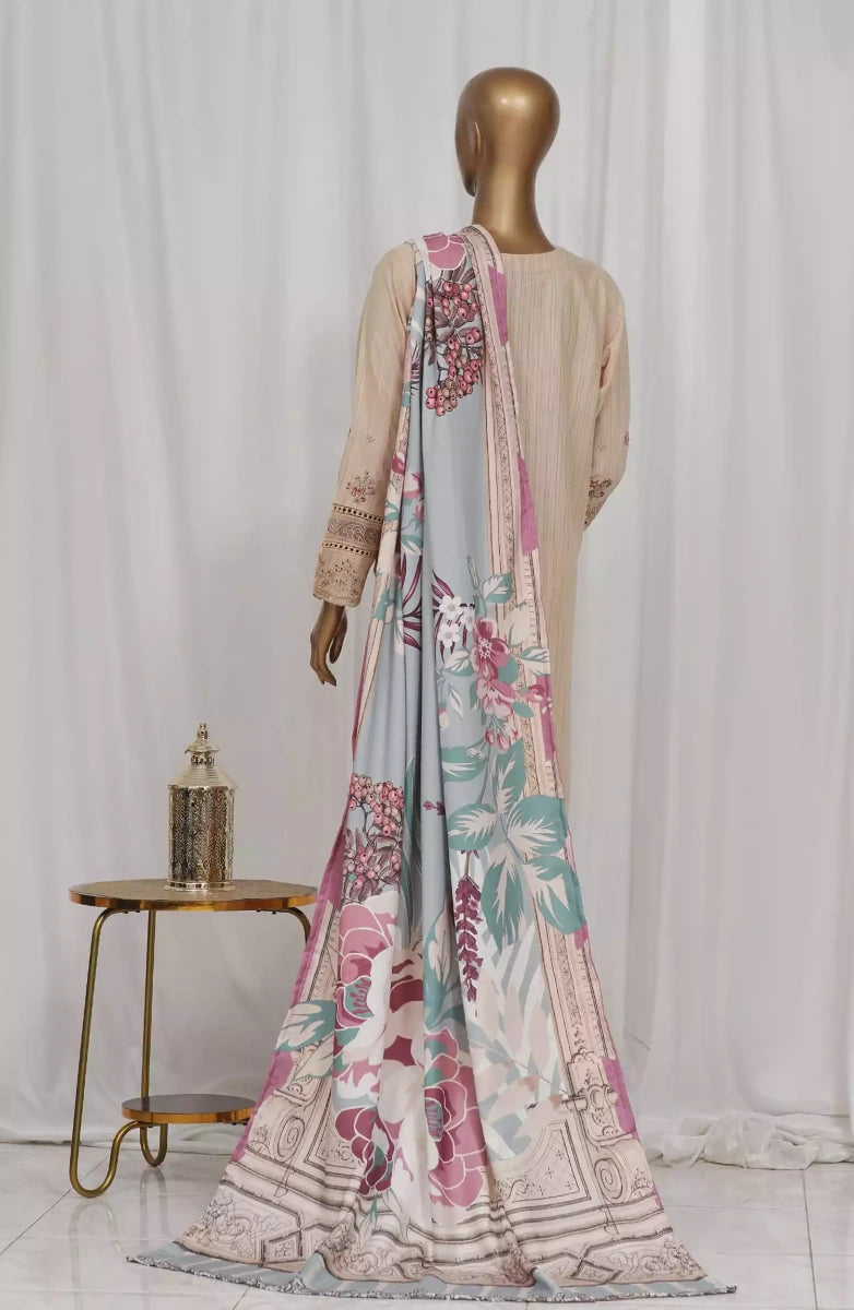 Modest Embroidered Khaddar Stitched 3 Piece Suit - 9940-Pnk - MOD25WNT - Pink - Winter Collection