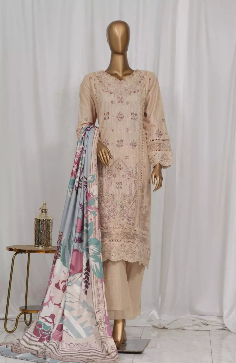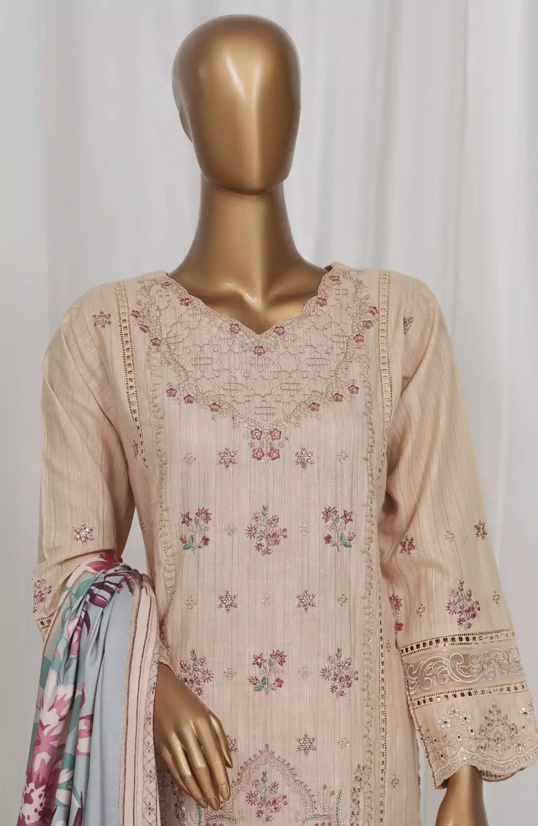 Modest Embroidered Khaddar Stitched 3 Piece Suit - 10040-Pnk - MOD25WNT - Pink - Winter Collection