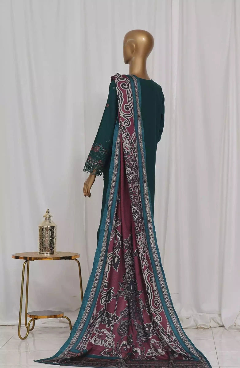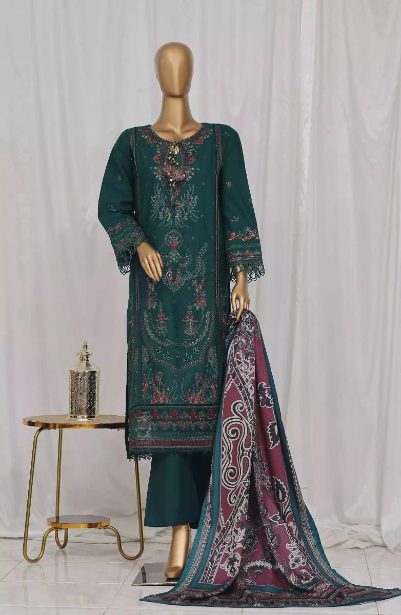 3 Piece Embroidered Luxury Khaddar Stitched Suit .