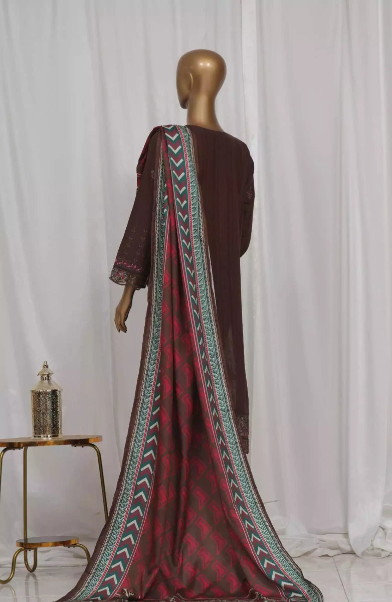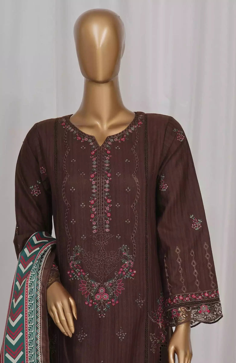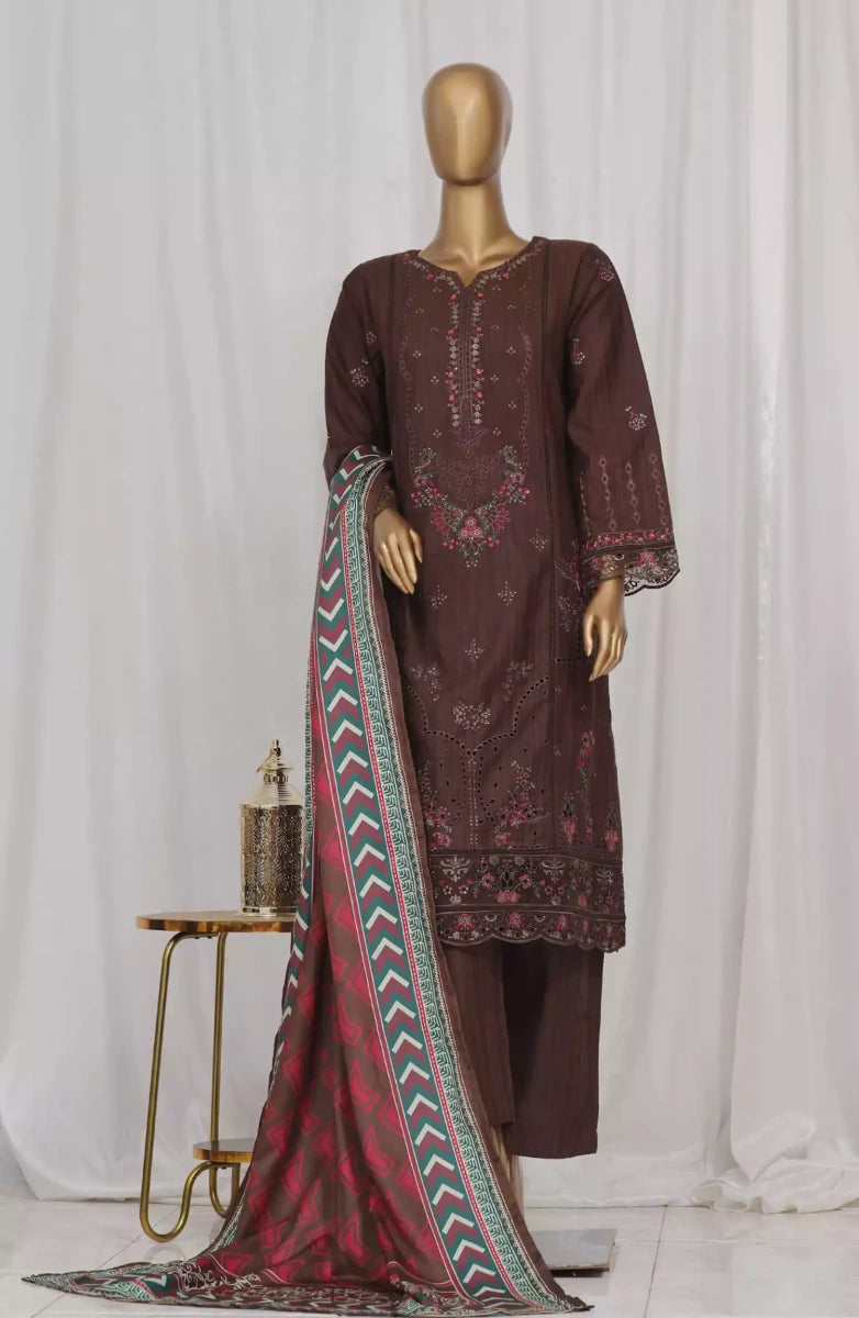 Modest Embroidered Khaddar Stitched 3 Piece Suit - 10000-Brn - MOD25WNT - Brown - Winter Collection