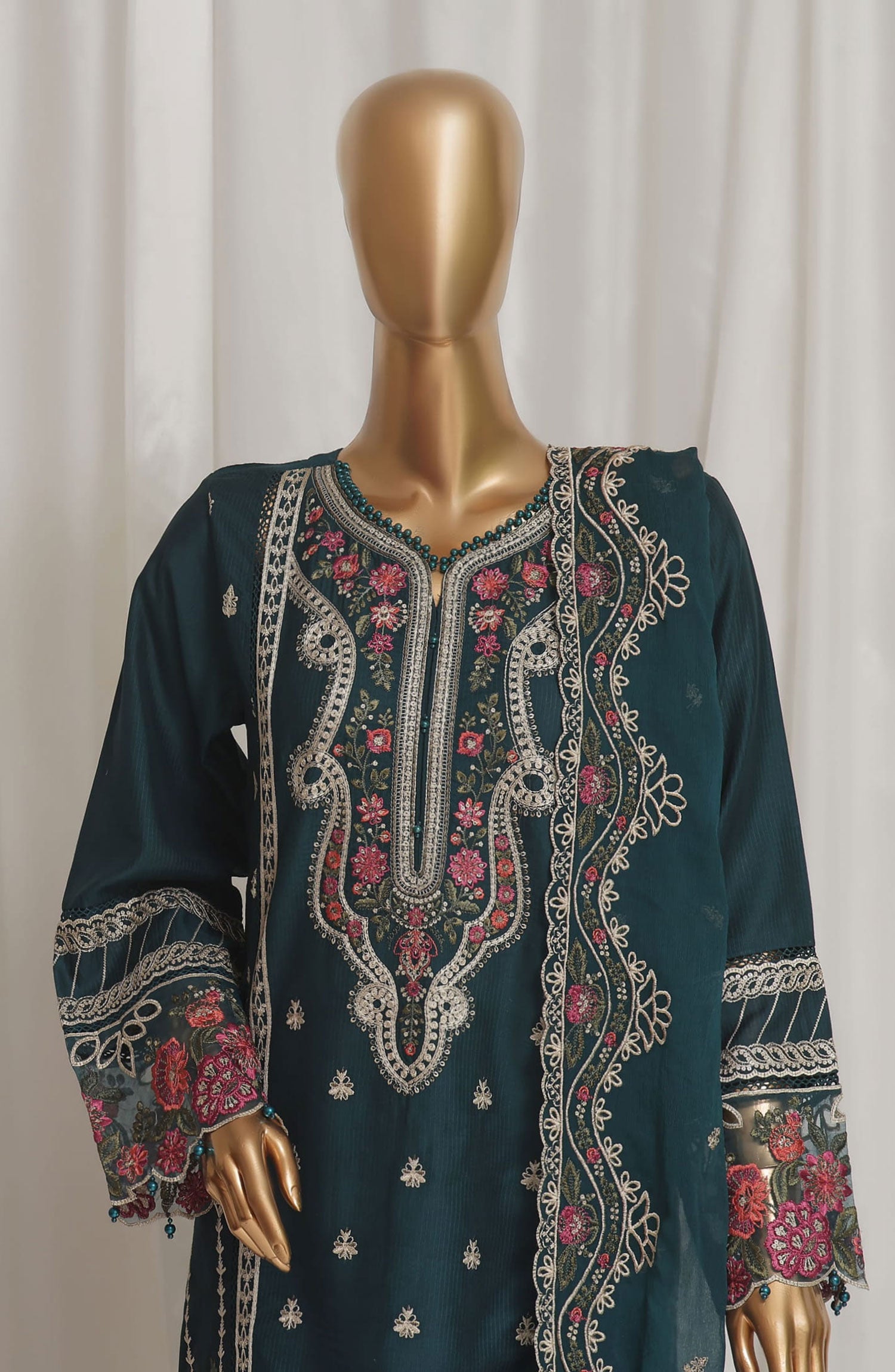 3 Piece Luxury Embroidered Rod Silk Suit .