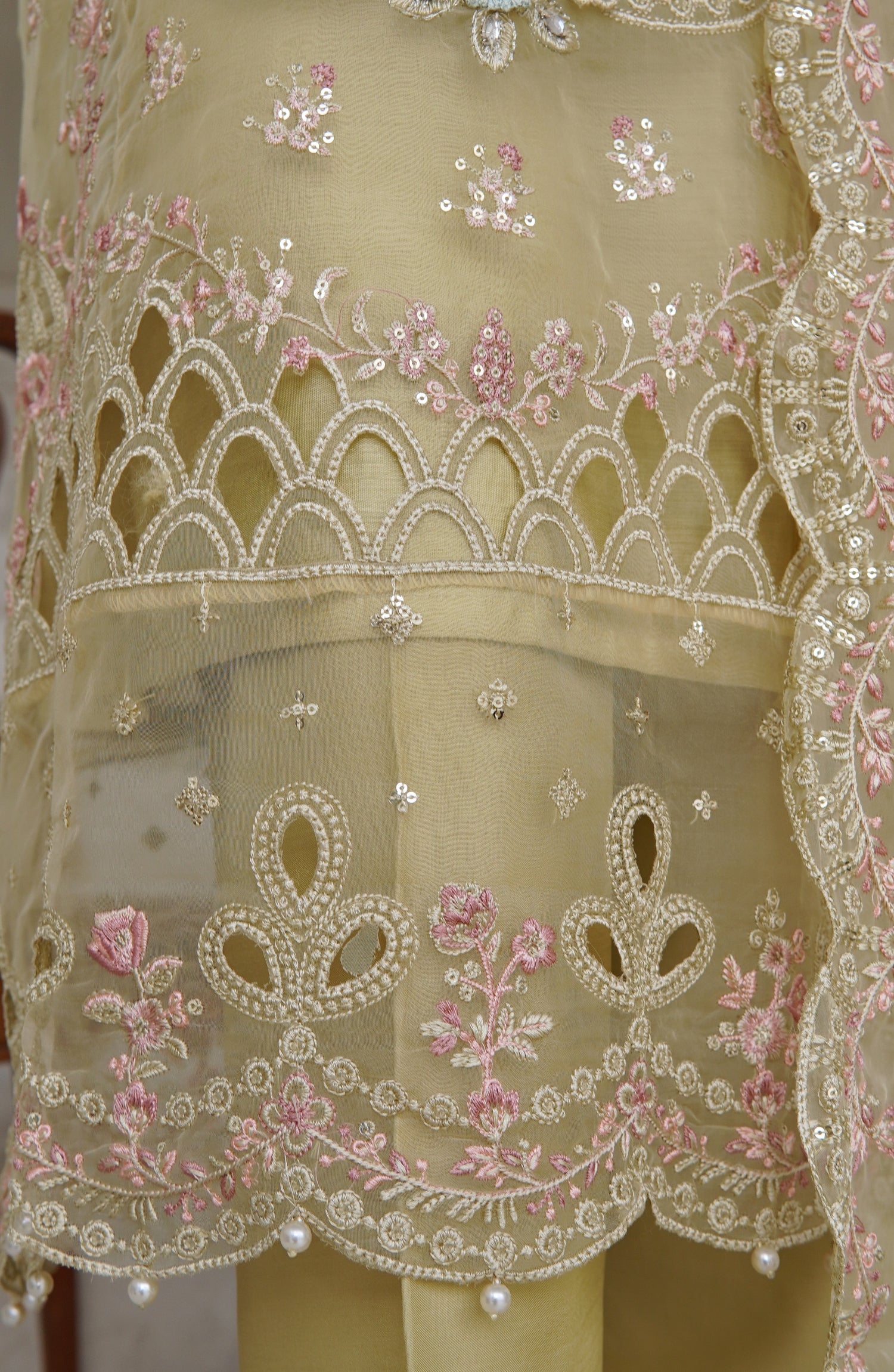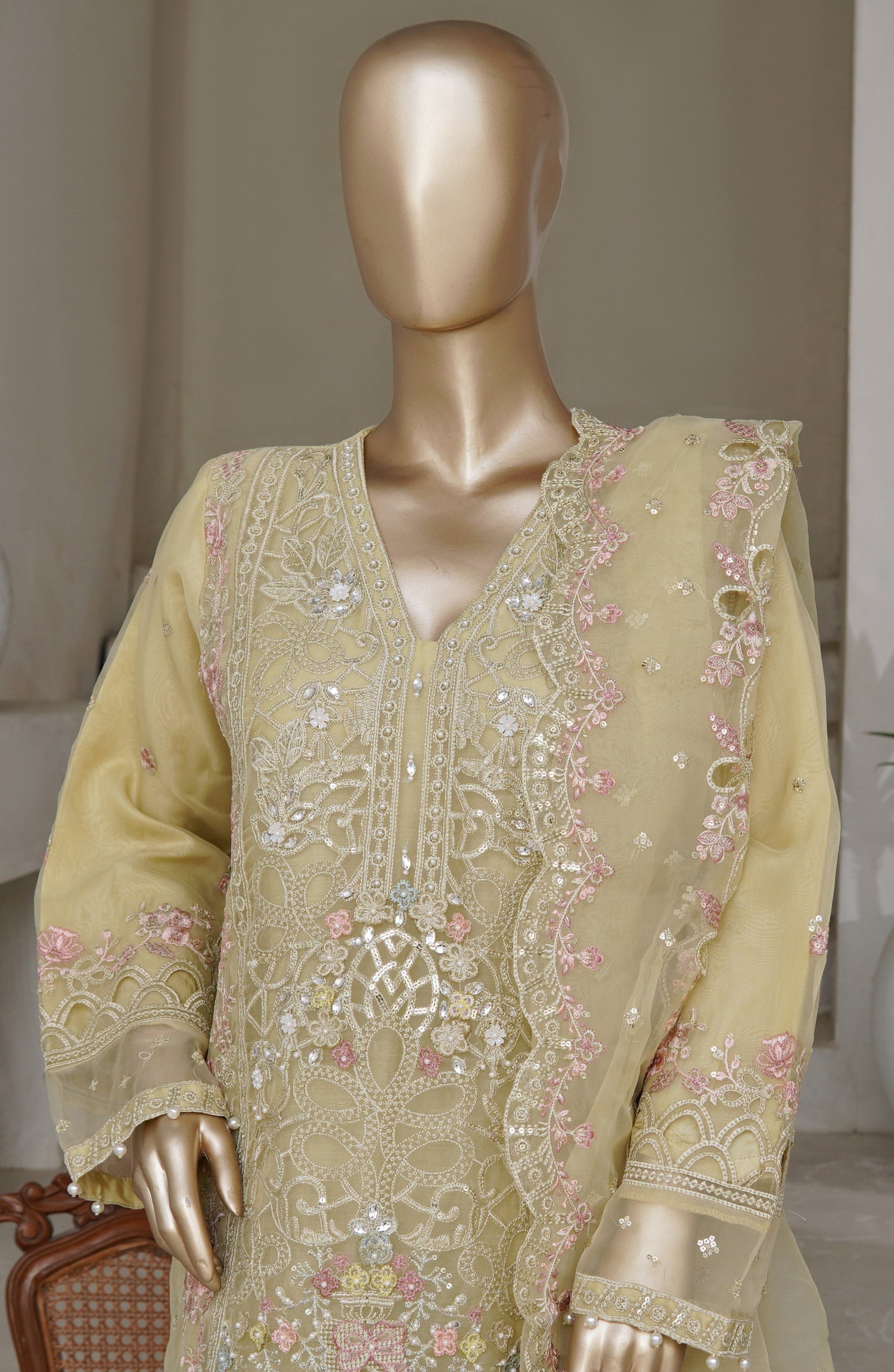 Exclusive Embroidered Stitched Organza Shirt