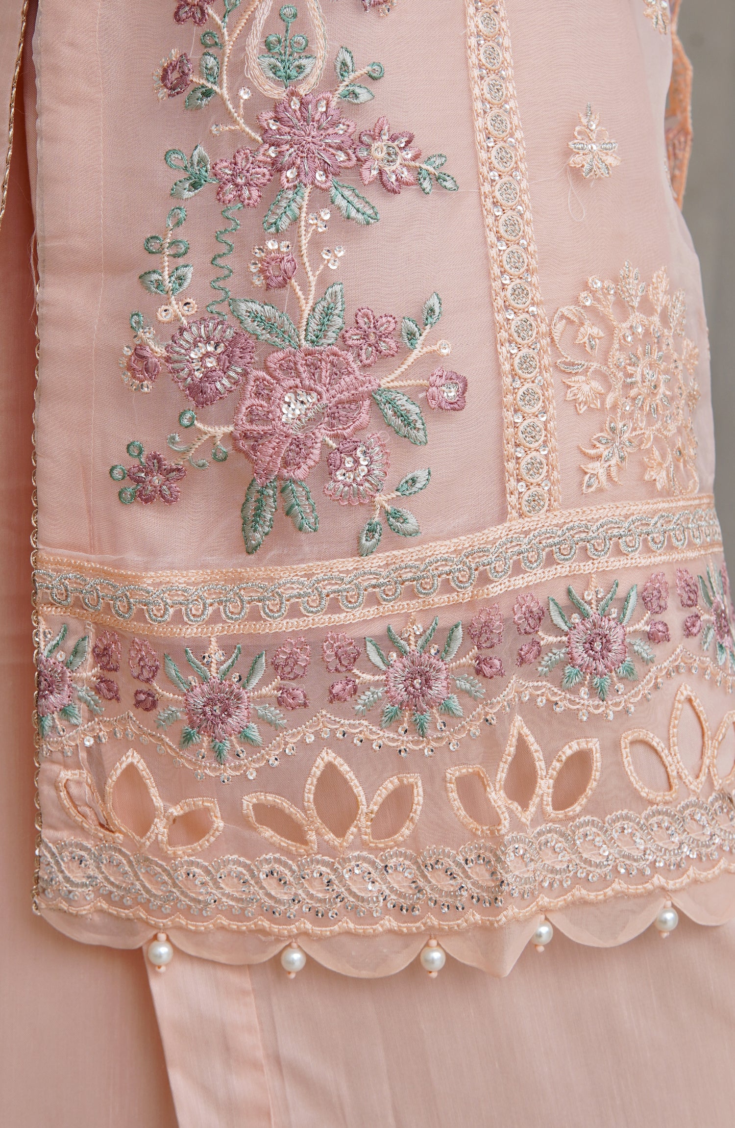 Exclusive Embroidered Stitched Short length Organza Shirt